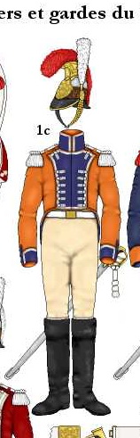Кирасирские полки в 1809-1812 гг: кирасир(а), трубач первого полка (б),