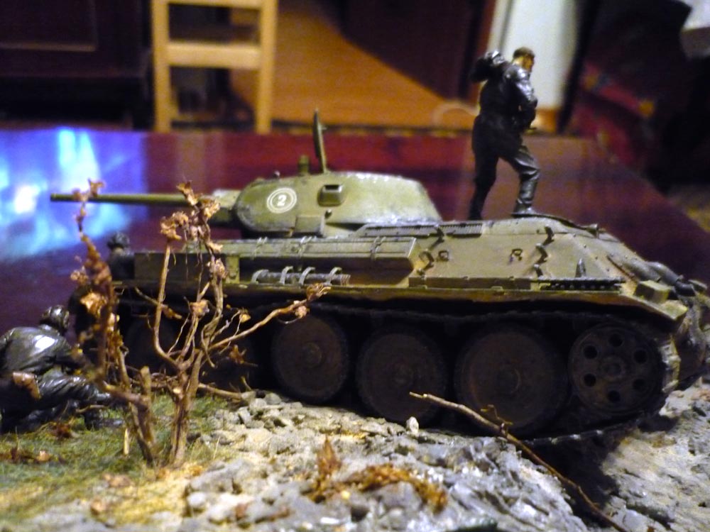 Вторая диорама будет с Т-34/76 1940 года выпуска и подбитой "двойкой". Сюжет простой: наши едут по проселку мимо подбитого врага (оригинально, не правда-ли)!