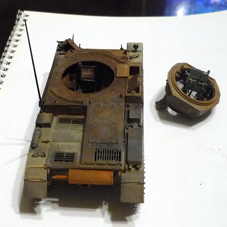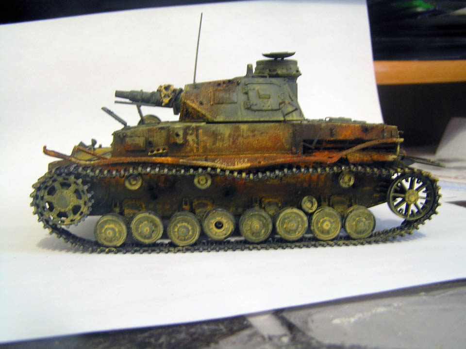 Владимир Симонов, да-да. Я согласен. Буду еще разика два по-мелочам проходить ржавчиной по "двойке", но только в нужных местах и только когда поставлю модель на диораму. Вокруг башни еще буду делать пятно выжженной травы (тоже пигментами), так что пока вопрос только в размещении моделей на основе/базе диорамы.