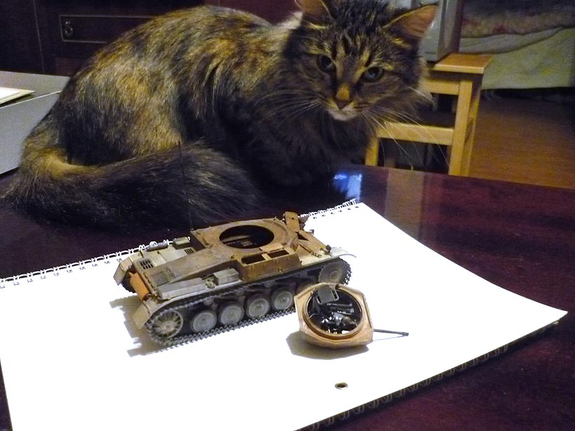А вот, собственно, и "двойка без головы"! На отрывание башни очень претендует мой меховой друг кошка Германия (можно просто Гера)!