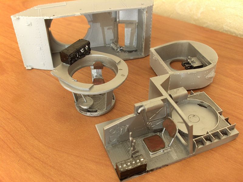 Продолжаем понемногу. Впереди общая сборка, это надолго, так что пока выложу фото интерьера. Его почти не видно даже со всеми открытыми люками, но воспроизведен неплохо. Надо добавить пружину противовеса люка и провода слева от сиденья мехвода. Странно, что казенники пулеметов в башне - одинаковые, этак под 7,62. А ведь один из пулеметов - крупнокалиберный Виккерс 50.