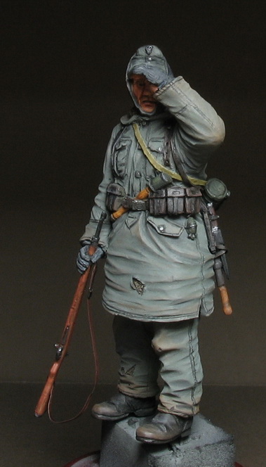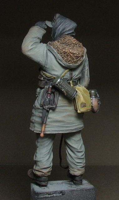 Все замечания "В точку", загрязнения надо будет подправить. Вторая фигурка тоже будет в серой парке, думаю штаны фельдграу сделать или заморочиться с камуфляжем? Что посоветуете?