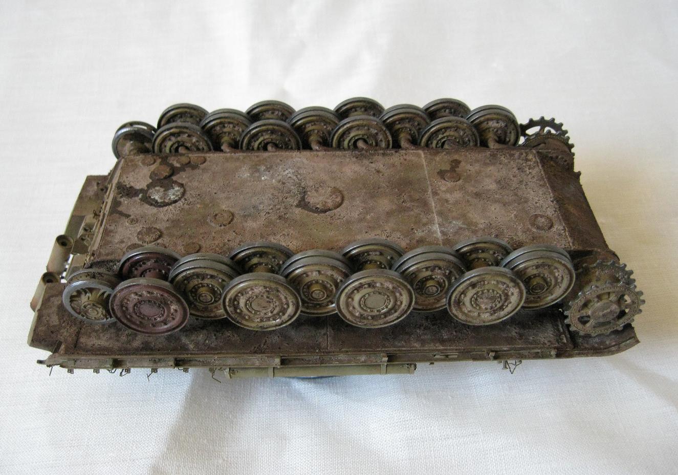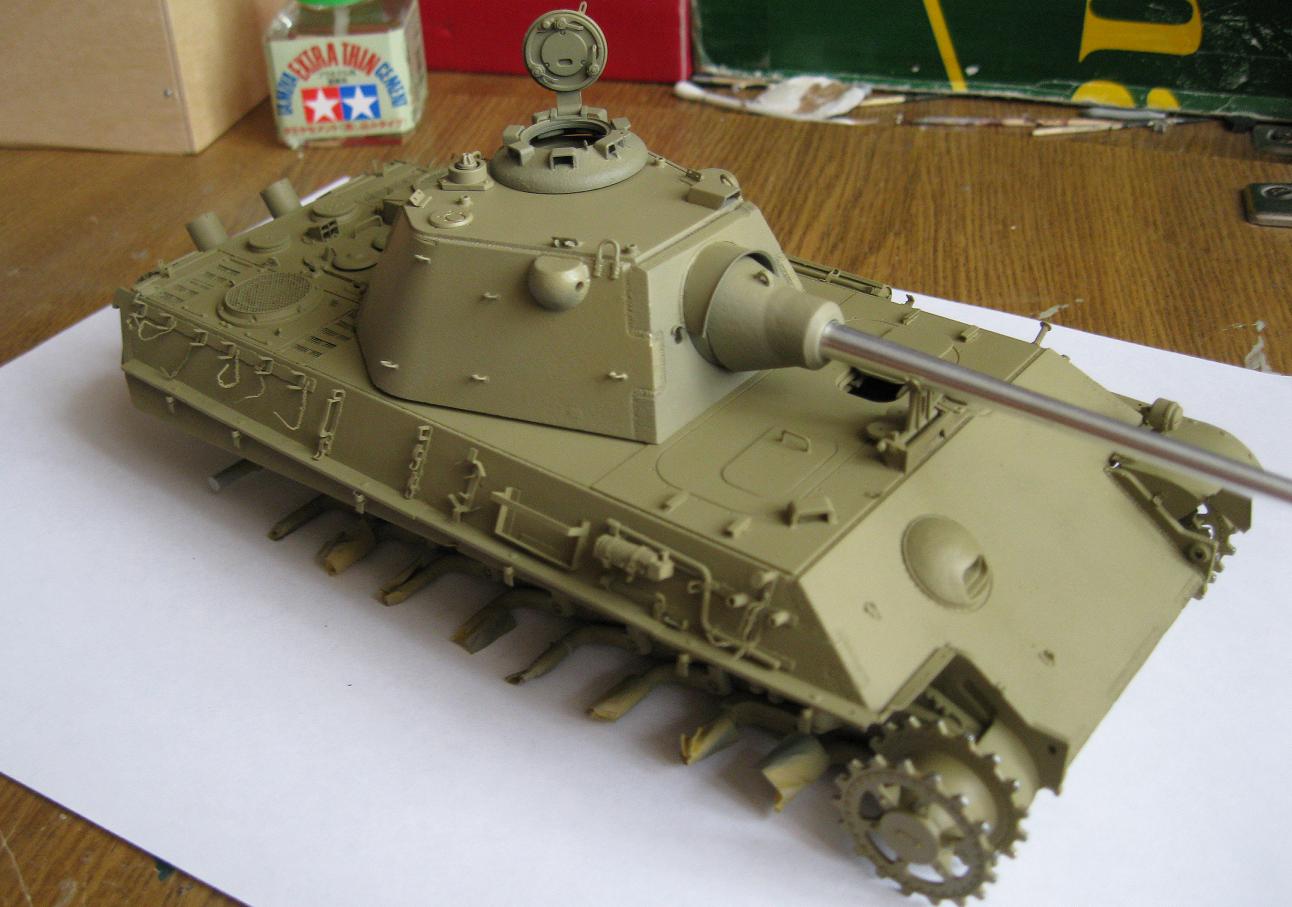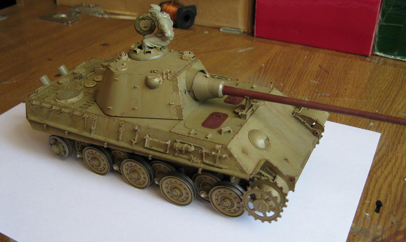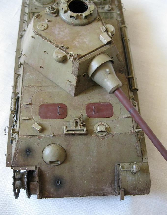 Никита ДОБРЫНИЧ, копоть от снарядов появляется весьма незначительно при попадании в броню кумулятивных и осколочно-фугасных снарядов, поэтому следует несколько уменьшить имитацию пятна копоти. Ну и лично моё мнение: коль уж драгоновскую Пантеру собирать, то не помешал хотя бы интерьер башни, а то наряду с прекрасно проработанным внешним видом, точностью соответствия чертежам и проработанной по максимальной возможности литья для этого масштаба мелочёвкой ещё и добавляется скучная пустота башни, не говоря уже о корпусе. Наверняка инженеры-проектировщики фирмы Dragon, изготавливая столь подробно торсионно-балансирую подвеску Пантеры и курсовой пулемёт, предусматривали установку интерьера моделистами. Я бы добавил ещё интерьер к Пантере, разумеется, не склеивая потом весь корпус и башню, чтобы потом было видно только 20-25% интерьера, а рационально продумав места разъёма корпуса с последующим выбором максимальной живучести и оптимальной конструкции скрепляющих узлов. Не смею вас упрекать или обидеть, это моё личное мнение.
