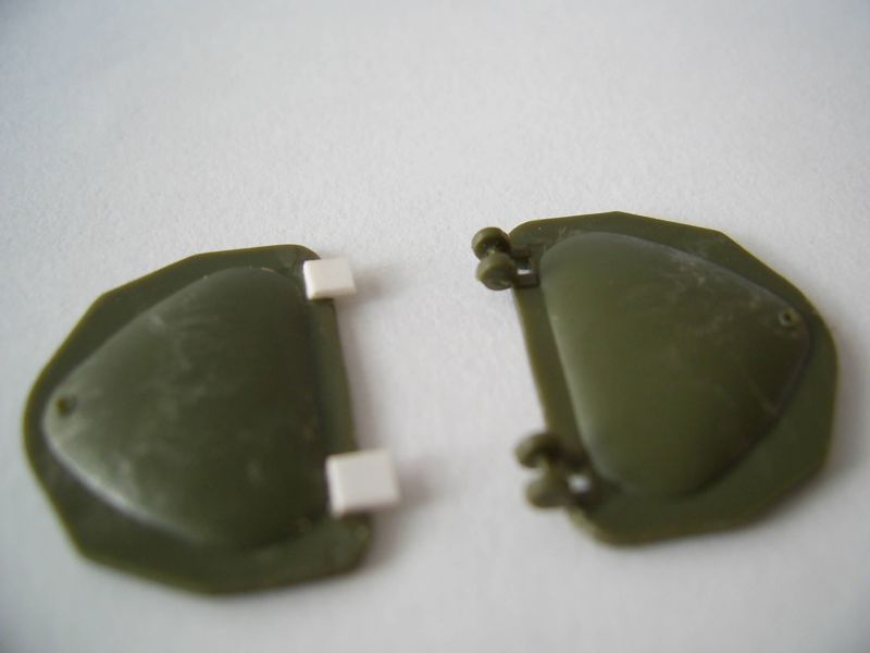 Теперь переделываем петли на крышках люков. Начнем с этого. Срезал петли и подклеил кусочки полистирола. Родные петли как-то не масштабные, проще говоря - здоровые сильно.