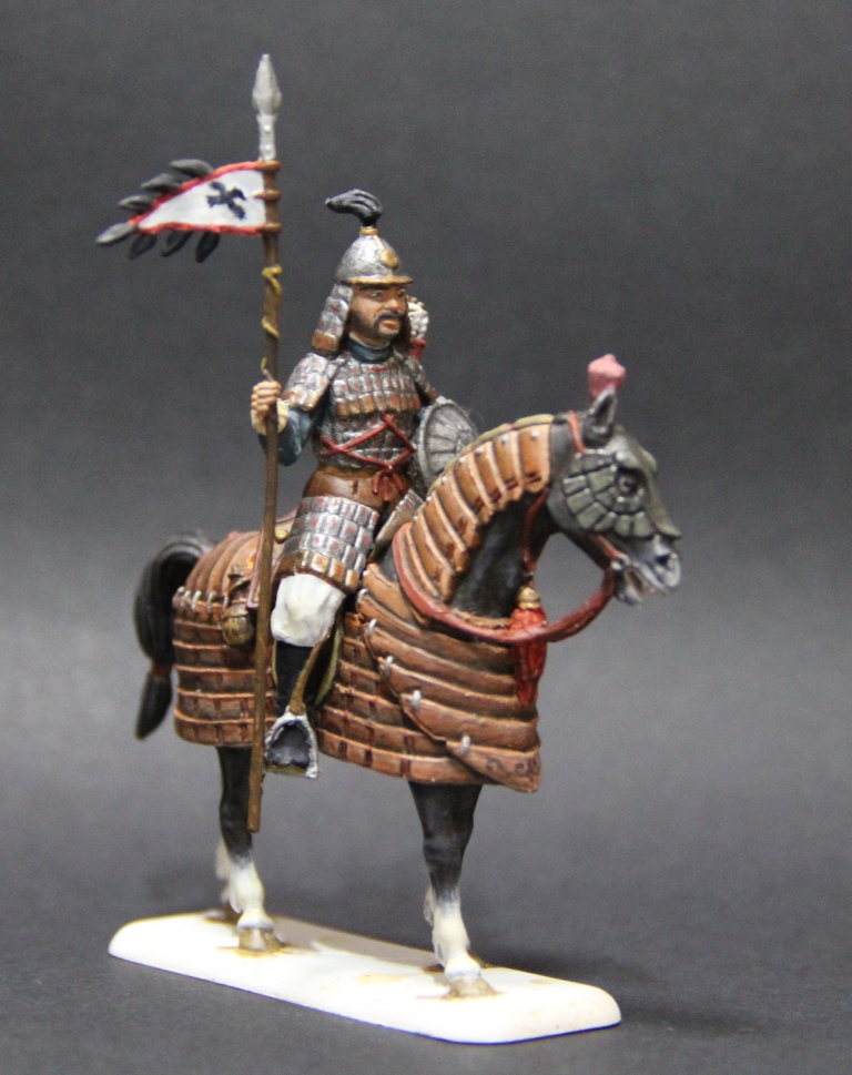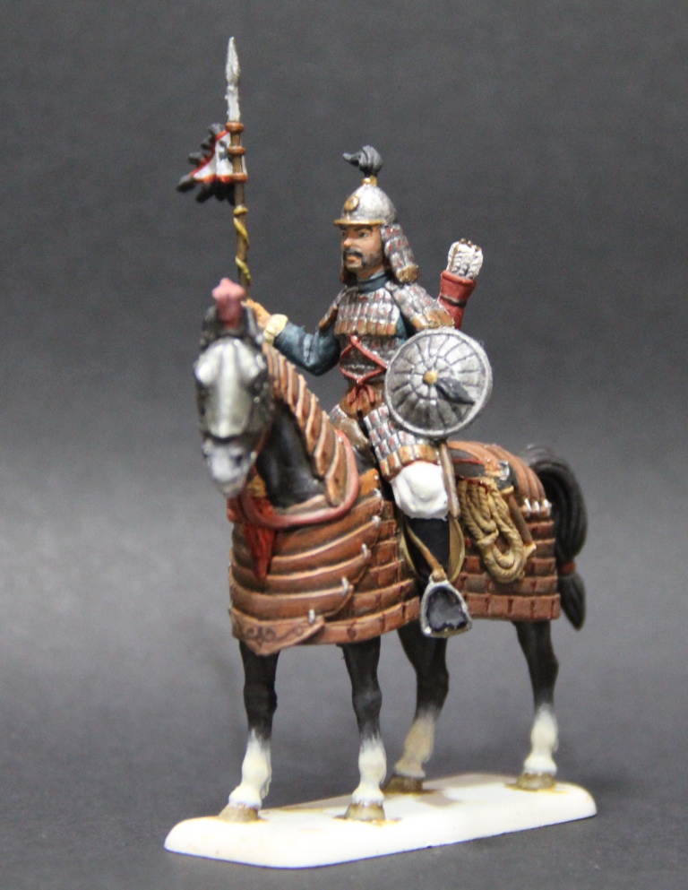 честно говоря еще хотелось, чтобы его ламеллярный доспех не был в схожей цветовой гамме с кольчугой, тогда бы это сделало фигурку очень скучной.