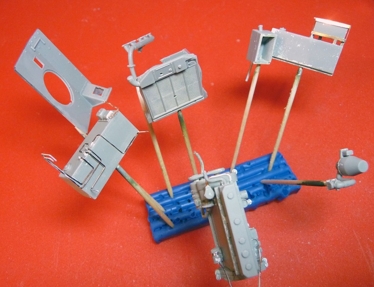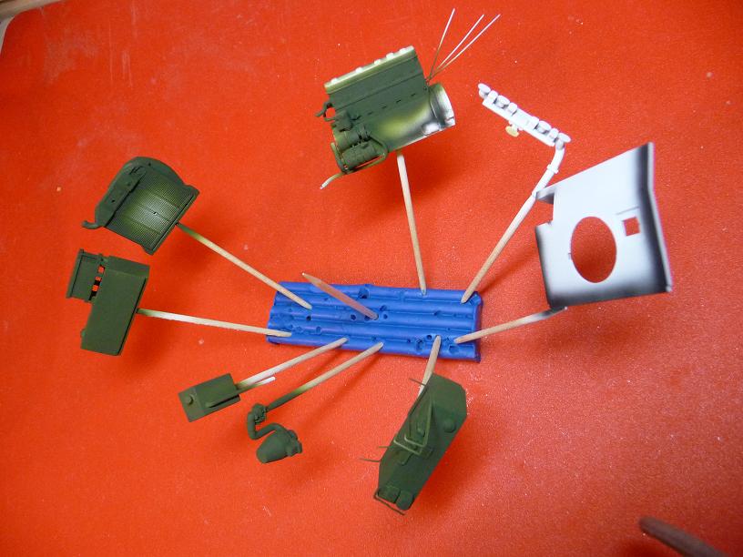 Настал момент покрасить двигатель, я стал искать в интернете кто и как его красит и понял, что все красят по разному, а именно разными цветами, я выбрал окрас двигателя как у PzKpfw 38t (подробные фото по вышеприведённой ссылке).