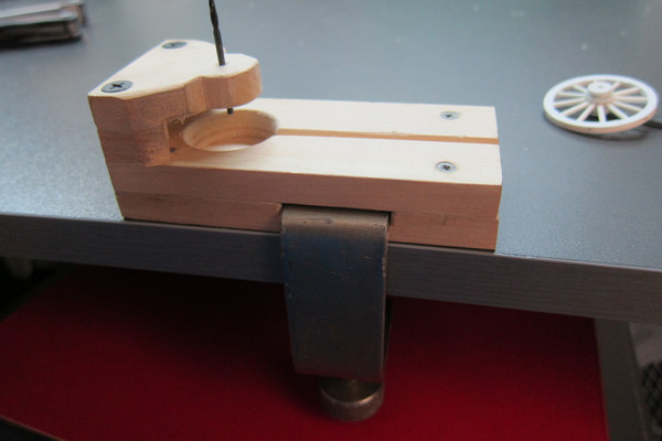 Григорий, ну Вы даёте. Сколько лет я делаю подобные колёса, но всегда делал трапецию резцом и надфилями. А Вы придумали простейшее приспособление. Ворую немедленно, но только сразу буду модернезировать Вашу машинку.Теперь по лафету.Следует учесть, что при установке правил в боевое положение, штырь для стопорения их в скобах на хоботе проходит сквозь отверстие в них, а не сверху.Банник с прибойником укладывается в походном положении на крюк и на ось. Спереди на лафете есть два кольца для ремня крепящего их. Кольца видны на фотографии в книге на стр.43 и 46.Толстоваты пожалуй оковочки на передней подушке и крюки для оттяжных канатов.А в остальном всё очень прилично.