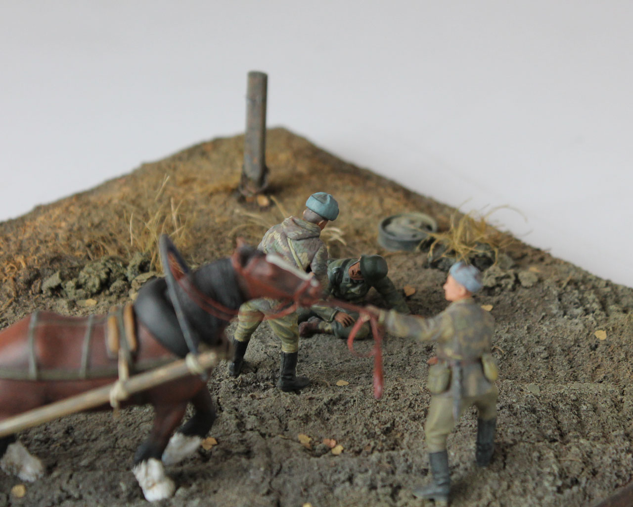 Последняя по времени диорама, над которой я работал около года назад. В планах добавить пару фигур и немного мелочевки. А пока - просто работа в процессе.