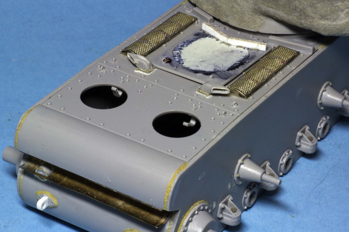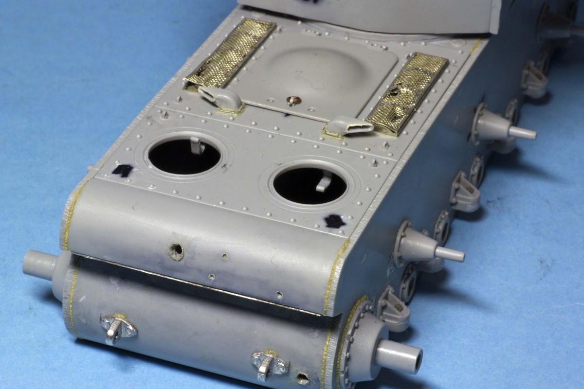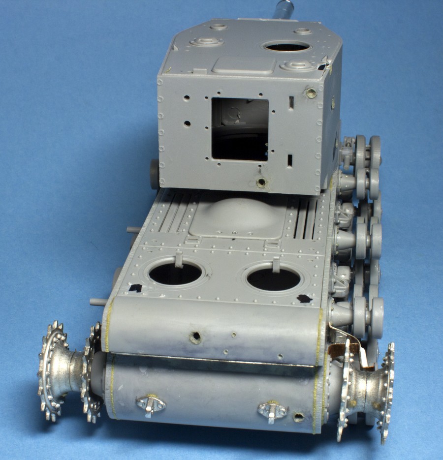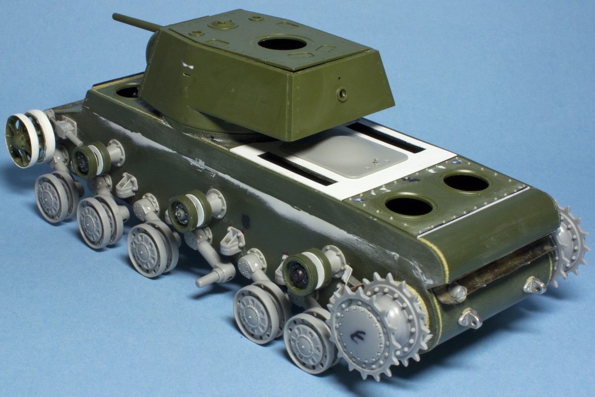 КВ-2 Корпус также практически завершен. Провозился с разрушенными катками -долго не мог понять, что там сломалось (не уверен, что и сейчас понимаю)