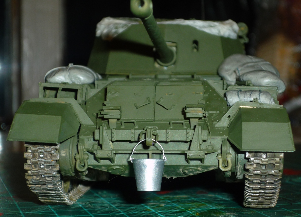 Наводчик по имени Бобби Браун (уроженец Глазго, хороший художник) прильнул к окулярам, на крыше рубки сложенна "брезентовая" крыша (сделанная из проклеенной салфетки)