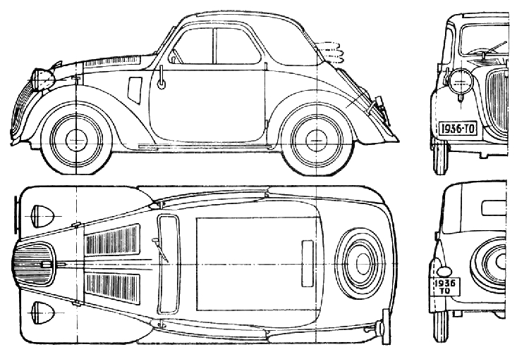А вот и есть такая - Фиат 500 Топполино, "мышонок". Еще перед войной этот простой (но кое в чем передовой - такая компактная компоновка была тогда внове), недорогой, надежный автомобильчик шел просто на ура и в Италии, и на экспорт, и во Франции его выпускали как Симку 5.