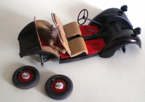 Насчет блеска - мне поможет мягкая кисть и хороший акриловый лак, слитый из баллона - надо учесть, что, в отличие от "звезды", тамиевскую краску он повреждает - т.е. только что обработал я кузов, без крыльев. Но это уже для виньетки.