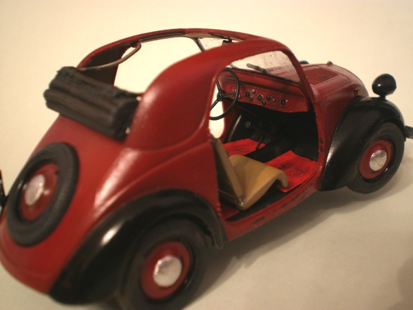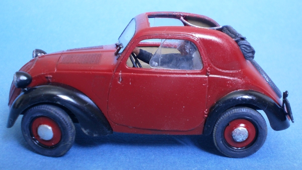Как раз подоспел обзор этой модельки в М-хобби. Автор "обозренной" модели явно не видел реальных фиатовских тентов, сделав "достоверный" сложенный тент из клеенки со множеством морщинок.