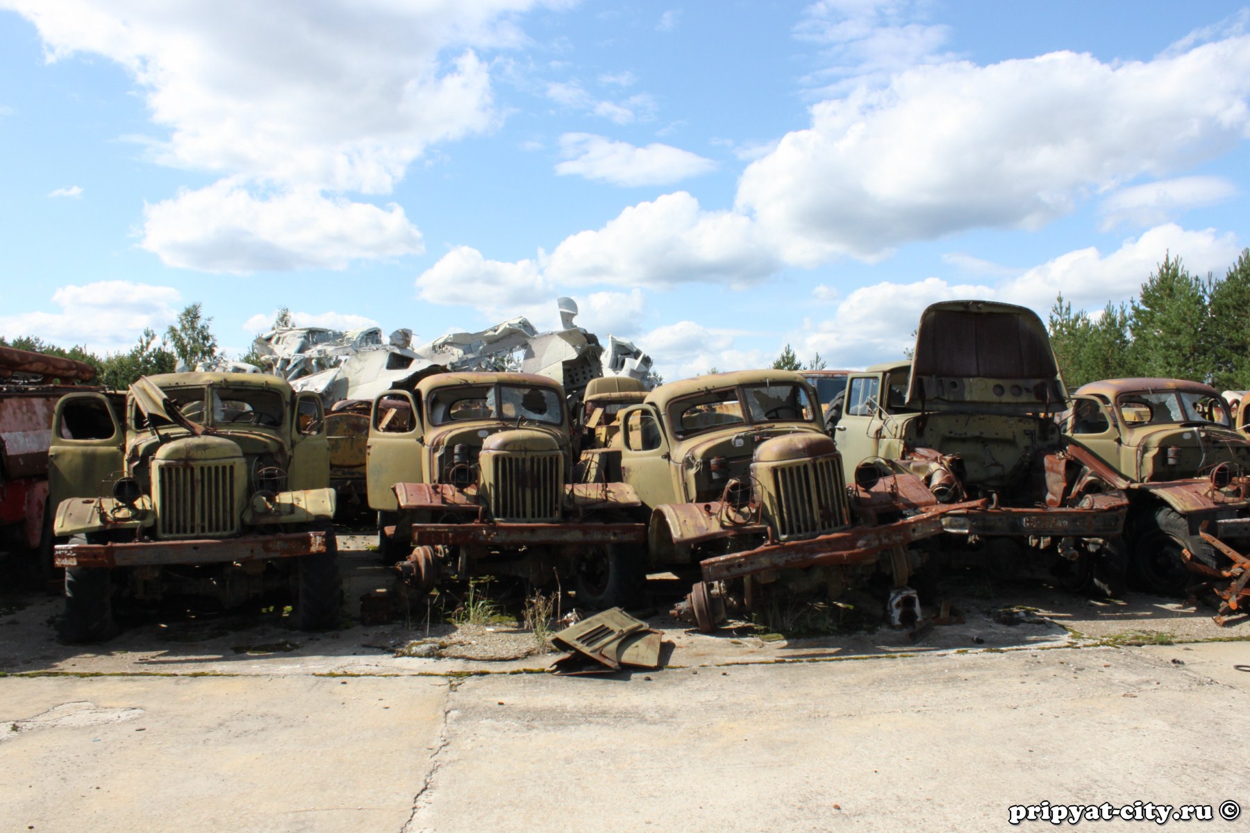 Доброго времени всем. В отстойниках зараженной техники Чернобыльской зоны отчуждения находились и находятся масса грузовиков различных марок, в том числе и ЗиЛ-157. Выглядит эта техника довольно живописно, на мой взгляд. С целью постройки заброшенного полуразобранного ЗиЛа прикупил бортовой грузовик ЗиЛ-157 6х6 от Trumpeter'a