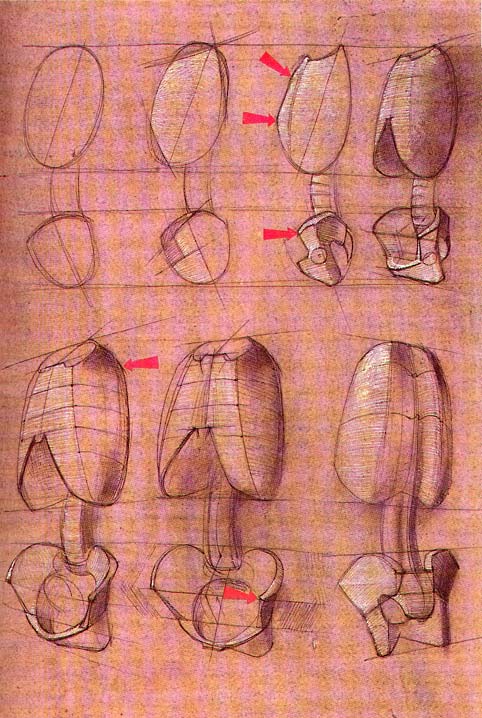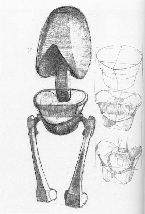 Вот картинки из Баммеса и, извиняюсь за нескромность, фото моих скелетиков. Я тоже раньше торс сразу квадратным делал, но сейчас понял что это неправильно.