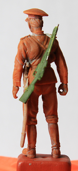 Продолжаем. Выходные – время внука, однако казак, вроде-бы, готов. Шашка не закреплена, ремешок, соответственно, тоже. С оружием морока. Чужое брать не хочу, пытаюсь сделать своё. Проблемы с выбором материала решались, как всегда, методом проб и ошибок. Начал с простого – с шашки. Первая была временной из литника. Вторую слепил из Fimo. Неудача. Материал слишком хрупок. При посадке по месту сломал несколько раз. Попробовал сваять из Cernit. Снова незачёт. Резиновость материала не дала работать с мелкими деталями. Остановился на смеси Fimo-Cernit 1:1. Результат удовлетворил. Шашка получилась в меру гибкой. Теперь вожусь с второй версией карабина Мосина обр. 1907 г. Последний из указанных материалов результата из-за моей криворукости должного не дал. Пробую сделать из зелёнки. Если долго мучиться… Всё равно получится!...