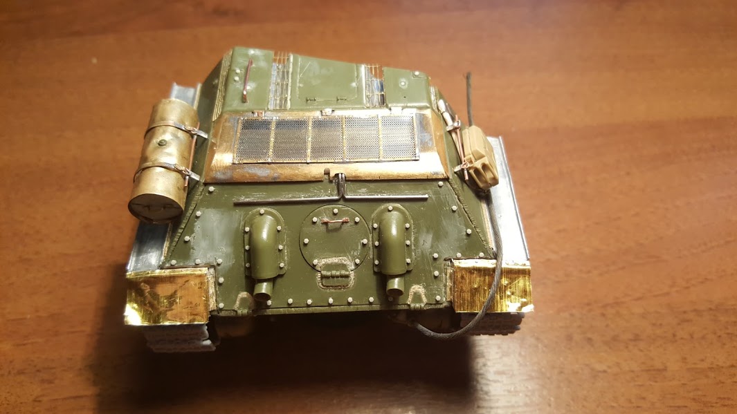 Т-34/85 (корма) от звезды,был собран и покрашен веником лет 10-12 назад.отмыл, распилил и запилил. из допов травленка Мир Моделей, Макетовский каток и траки,болты и гайки Masterclub, остальное из подручных средств.