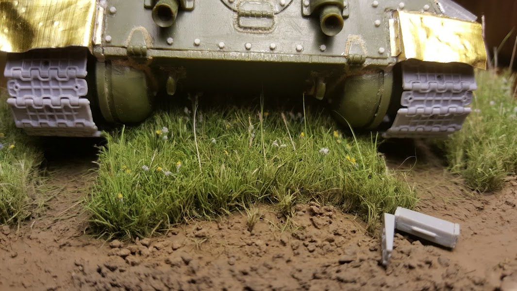 Мне травка нравится. Но. Надо бы под гусеницами добавить, примятую, но все же траву.