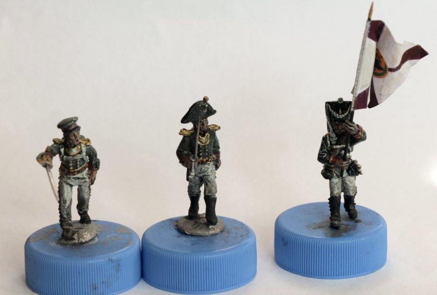 На имеющихся фигурах знаменосца и офицеров сгладил слишком сильные тени маслом.