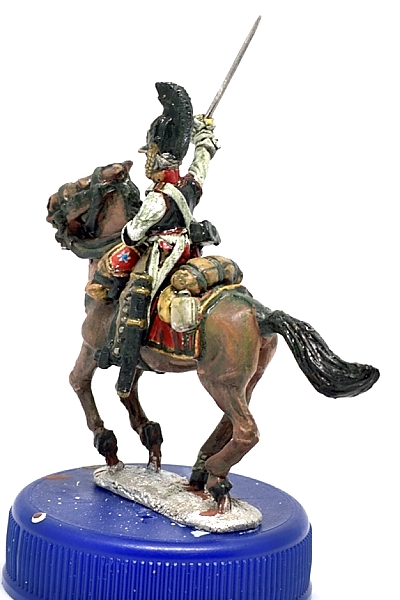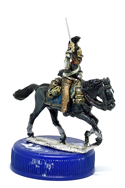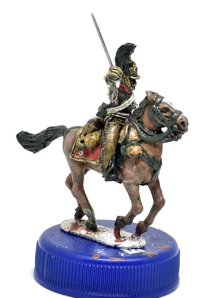 Для "разогрева" наверное начну с кирасиров. Сами фигуры отлиты очень неплохо, но вот палаши требуют замены - очень широкие и погнутые. Думаю, что попробую сделать новые в масштабе методом шлифовки стальной проволоки 0.8мм до плоского состояния и формирования клинка, потом просверлю эфес и вклею. Также надо будет в паре мест убрать лишний металл, например между поводьями. Либо со знаменосцев и младших офицеров начну, они в плане окраски проще.
