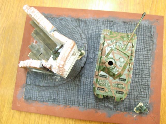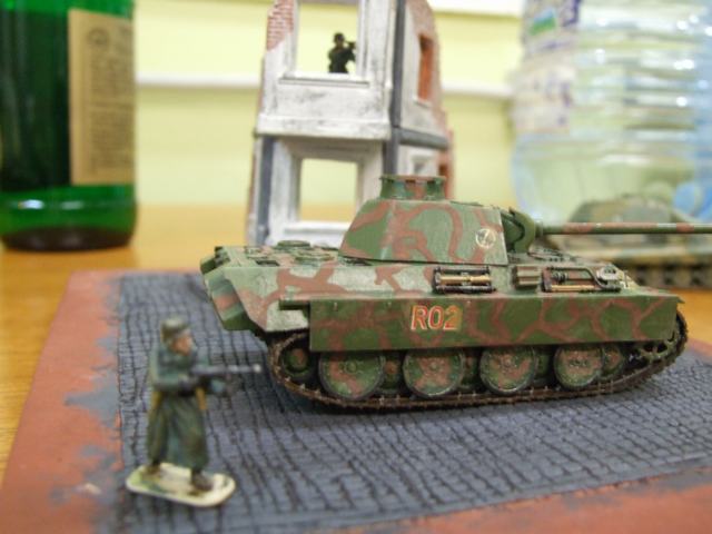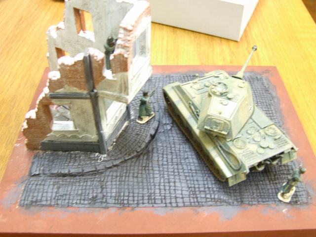 Королевский тигр - Дракон, Пантера - Хасигава, солдаты - италери вроде) 72 масштаб, будут добавлены кирпичи разбросанные, пару бочек.