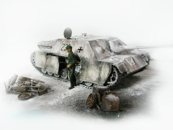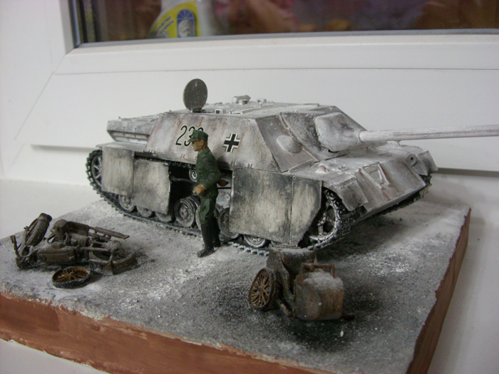 Как уже было сказано,техника выглядит хорошо,а вот бойца лучше заменить.И уделяйте обработке и росписи фигурок больше времени и усердия.