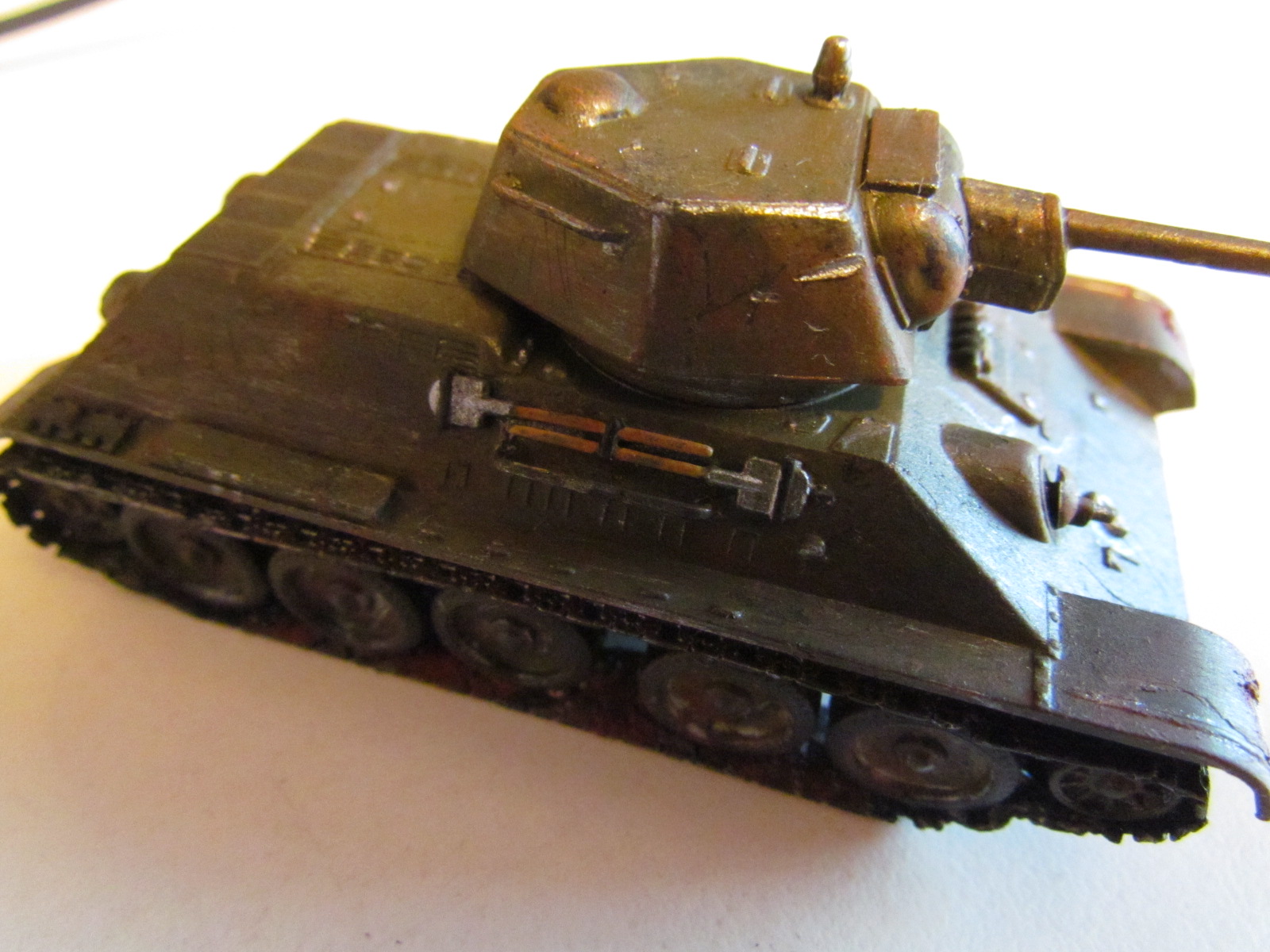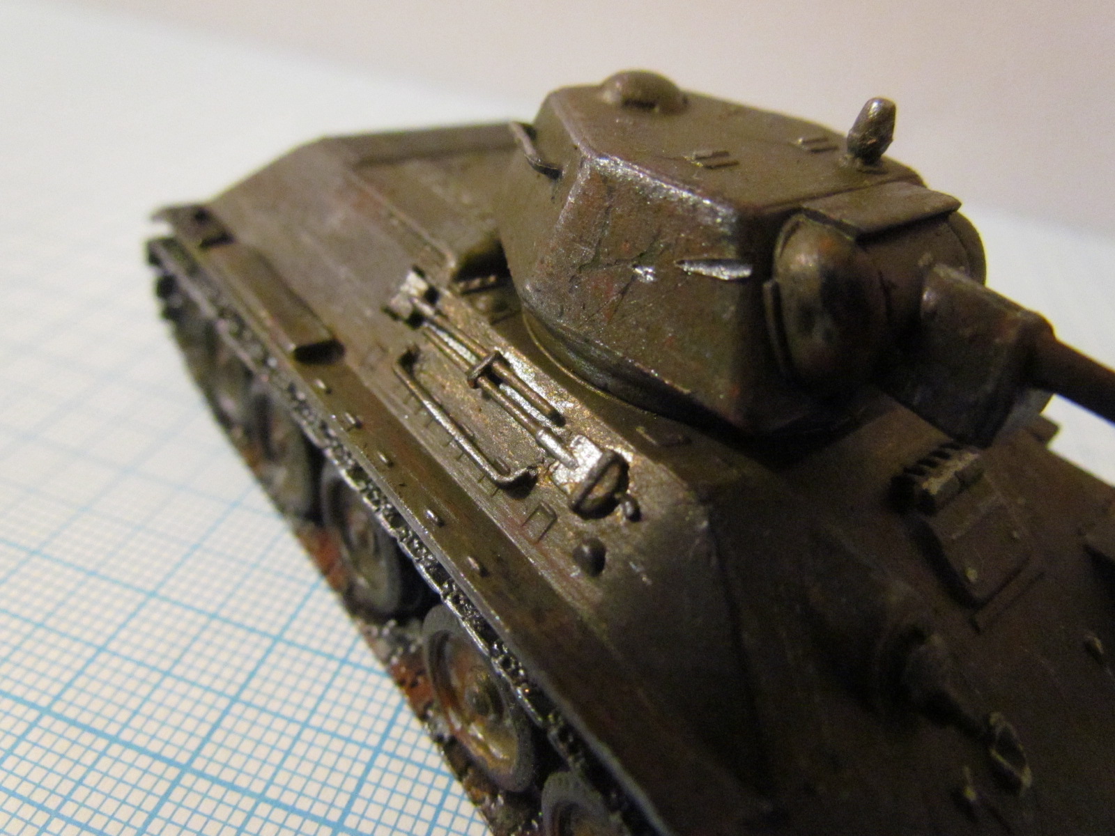 Кончик ствола нагаром черным надо бы, ржавчину на колёса и гусеницы и всё как бы)))