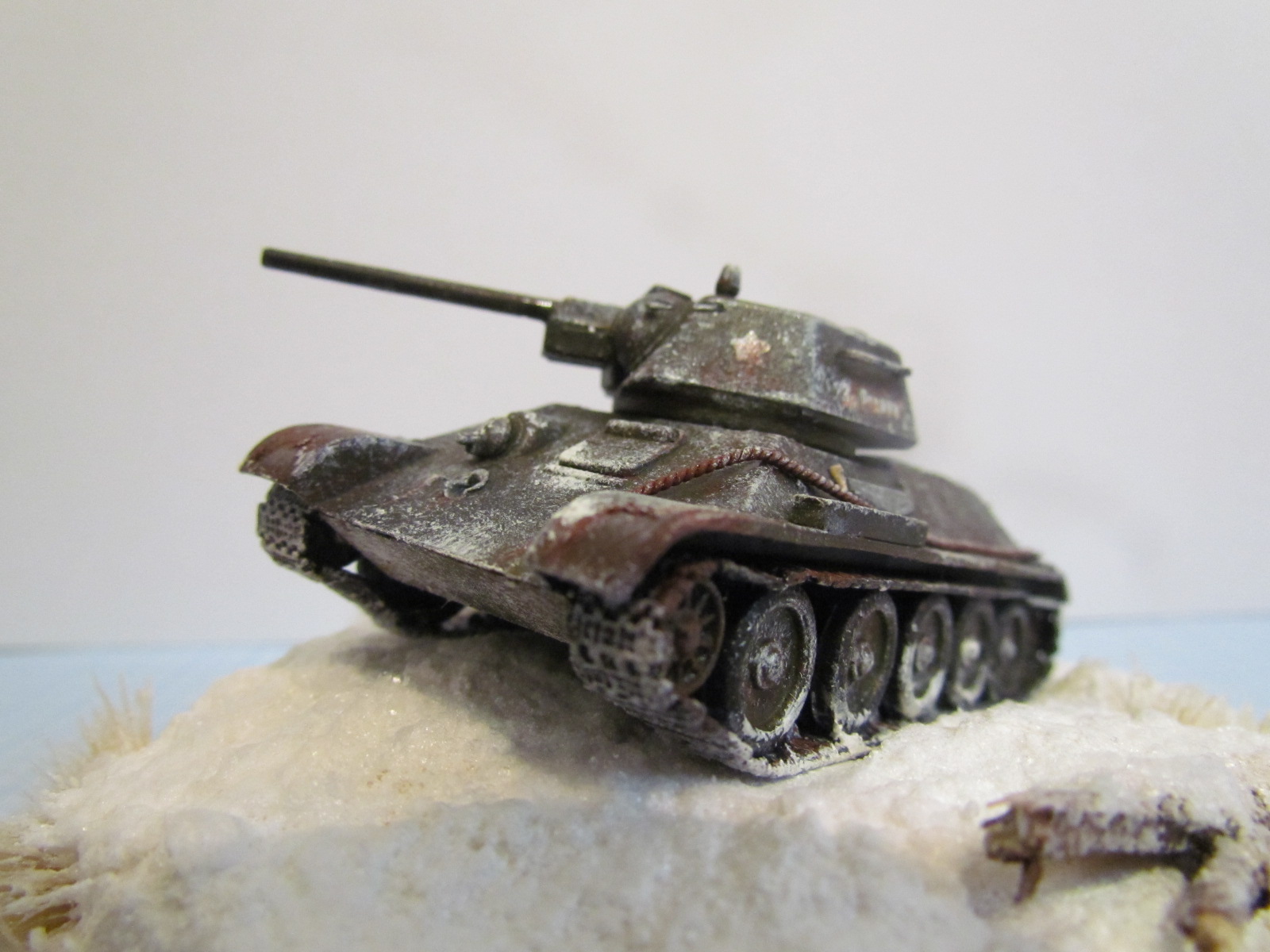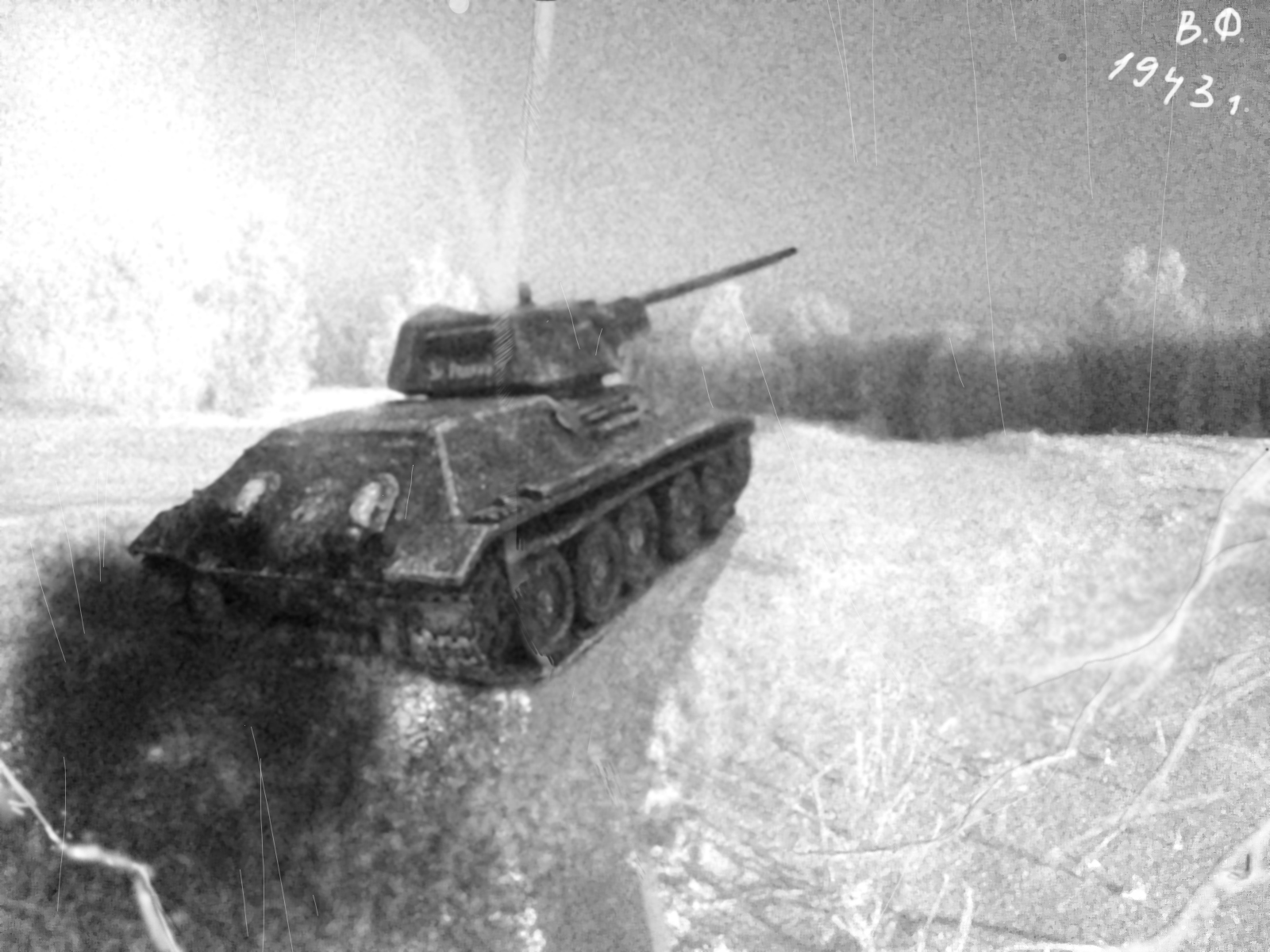 Замечательный танк! А судя по капле на среднем левом катке: ПВА старый, потому и снег пожелтел. Но это ничего, по весне бывает. Ещё бы результат фотошопа чуть порыжее сделать - будет очень похоже на старое фото. С уважением и Новым Годом!