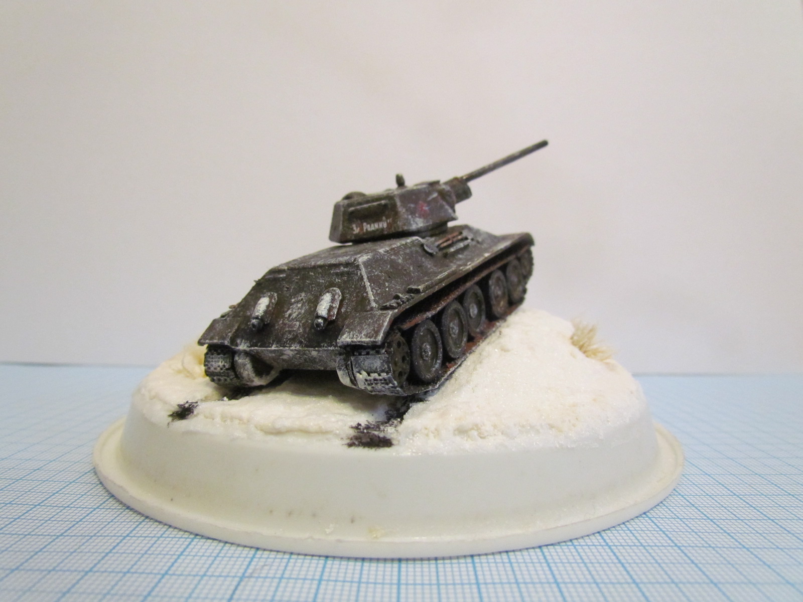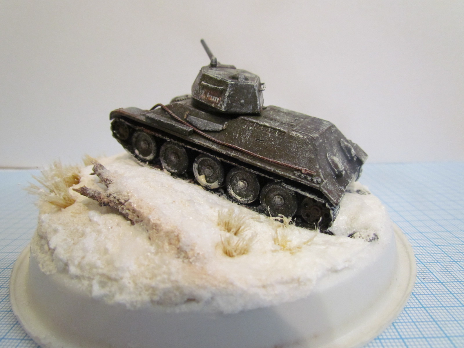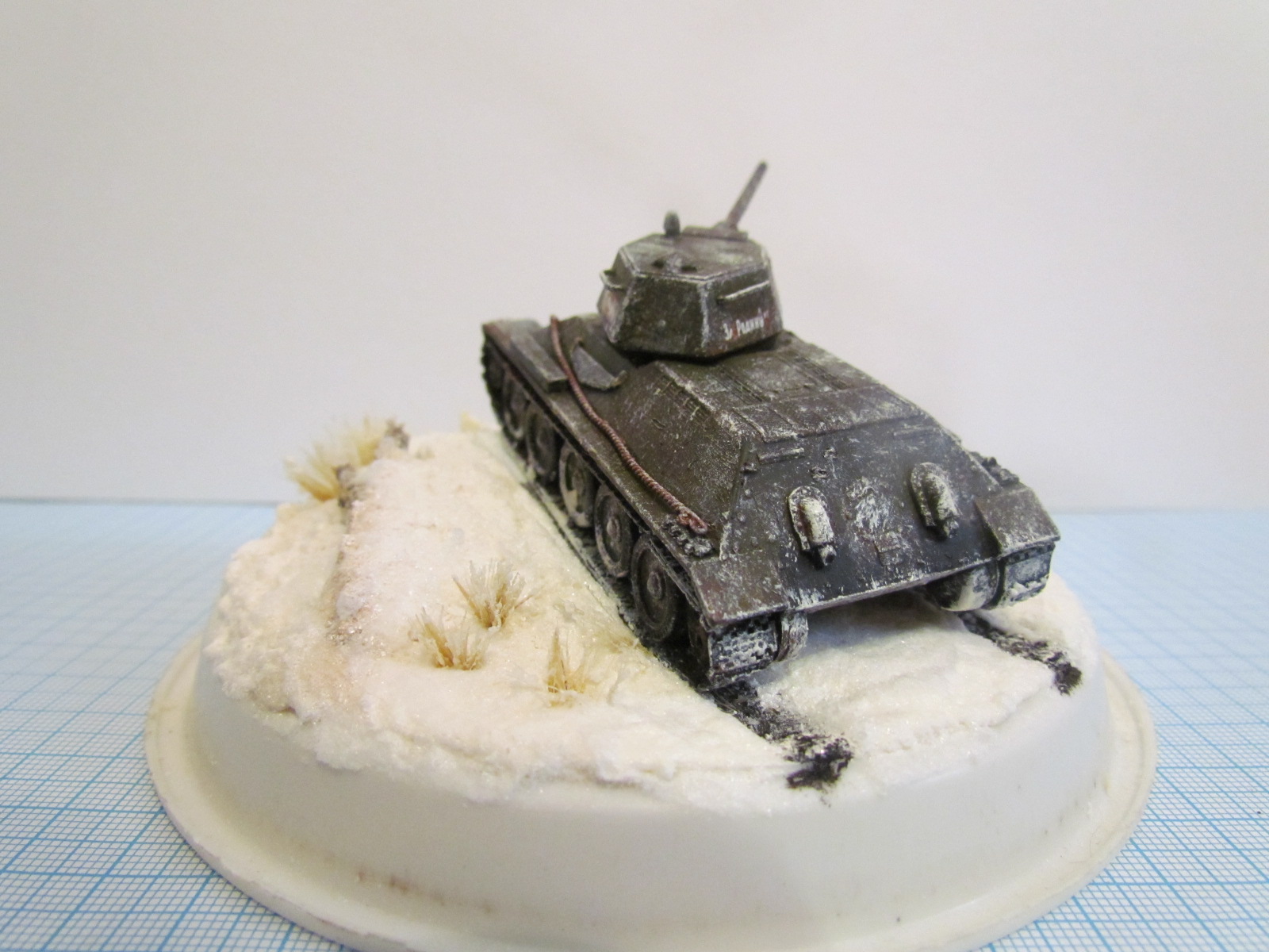 Представляю на ваш суд небольшую виньетку в 72 масштабе, танк т-34-76 из предыдущей созданой мною темы поставил на зимнее основание: тарелочка из под горшка с цветами :helmet: (выпросил у мамы),рельеф бумага и лейкопластырь,потом сода+ПВА,и чуть чуть снега из балона(т.к. масса с содой от чего то дала желтого цвета,если кто знает почему,скажите), трава из малярной кисточки, танк красил Звездовским акрилом. Всех С Новым Годом!!!