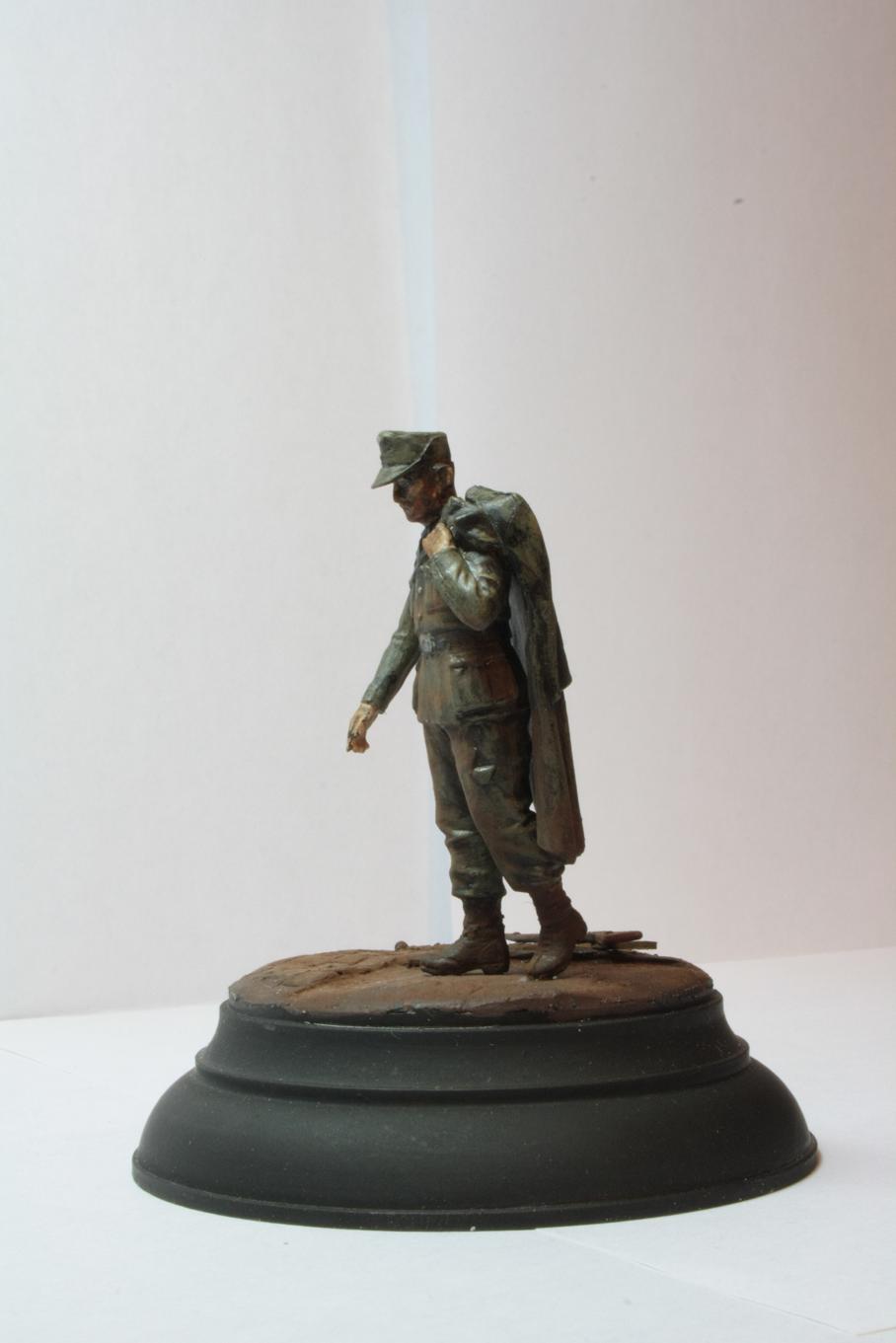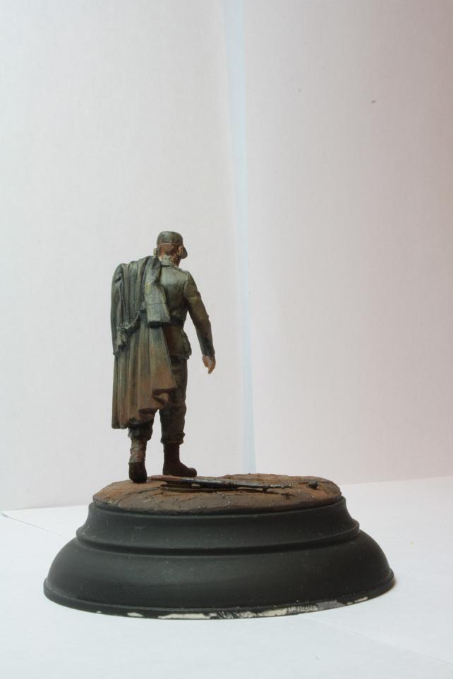 В работе использован пленный немец из МастерБоксовских пленных. Круглое основание от миниарта. STG от драгоновской генты. Брусчатка-эпоксилин. Окрашено акрилом звезда и пигментами от МастерПигмент.