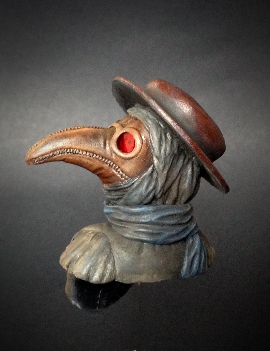 Клюв был сделан из кожи и наполнен лепесткaми цветов, трав и благовоний. Глазницы были покрыты красным стеклом, чтобы отпугнуть демонов. Доктор держал длинную палку, чтобы исследовать трупы, не касаясь.