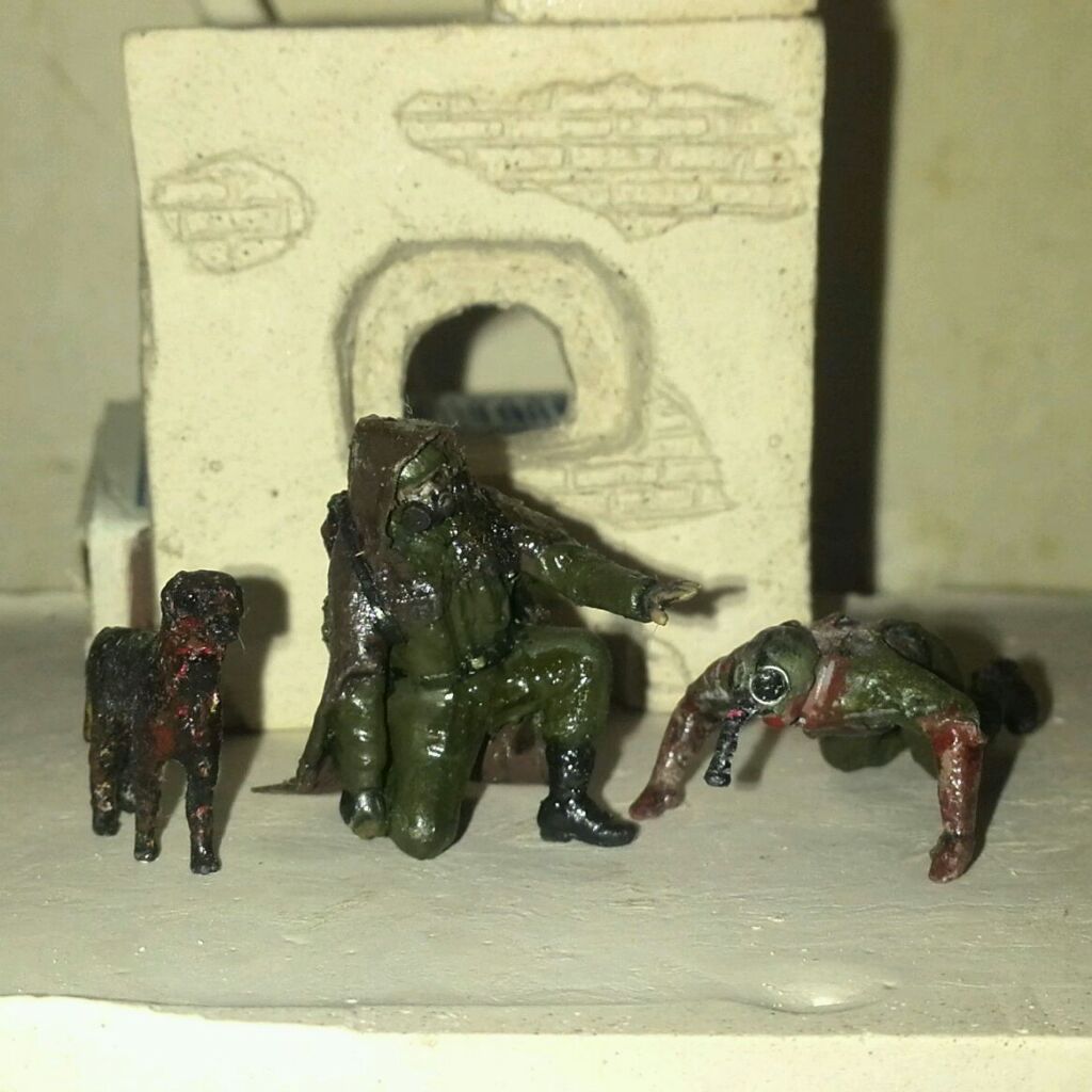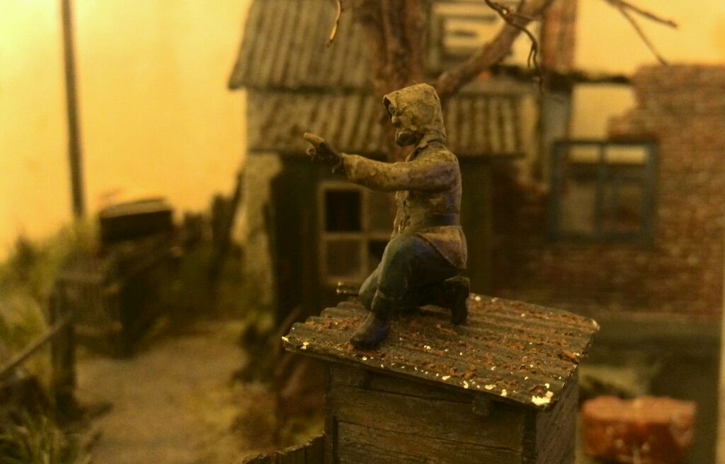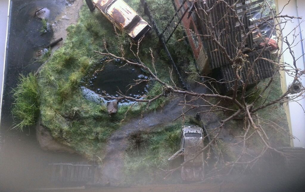 Здравствуйте друзья!))) Хочу выставить на ваш суд свою первую работу. Сделана она в не типичном для этого дела масштабе - 1:43! Работа ещё не завершена и мне бы очень хотелось, что бы профи этого дела не прошли мимо этой темы и дали качественную критику и советы - приму с благодарностью! Кидаться можете не только табуретами но и диванами!))) Постараюсь быть послушным и внимательным учеником! Диорама посвящена моей любимой игре Сталкер. Идея её создания пришла совершенно спонтанно. Сам я ранее ни чем подобным не занимался. Основное моё хобби это собирать, то есть покупать и ставить на полочку))) модели советских и российских авто в масштабе 1:43! Собственно парочку таких моделей я и использовал на данной диораме. Автолегенды СССР -может кто слышал? Всё кроме маФынок самодельное!Хотя над ними тоже пришлось немного поглумиться))) Ещё есть две фигурки Снорка и Сталкера в 48 масштабе, но они, прямо скажу, вышли не айс, поэтому предстоят переделке!Делал я их из набора каких то лётчиков, к сожалению выкинул давно коробку, поэтому названия не вспомню. Краски использую акриловые Тамия и ХоббиКолор, также использую смывки Валеджо и художественную пастель.