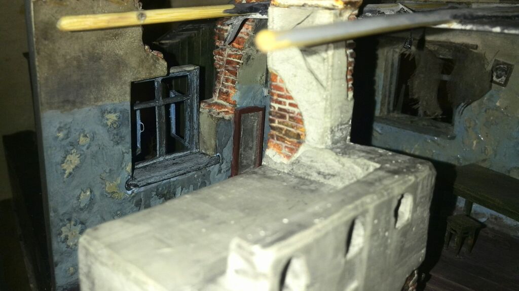Работа приближается к завершению. Закончил крайний объект, который непременно хотел видеть на диораме - русскую печь!