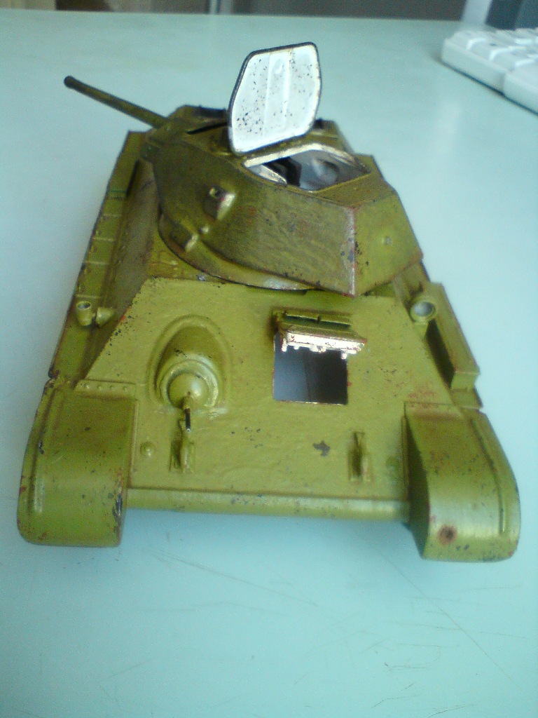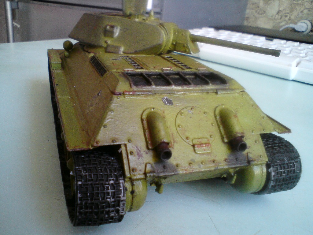 На прототипе (фотографии) видно на корпусе следы зимнего камуфляжа - побелки. Нанёс сверху зимний камуфляж белой художественной краской.