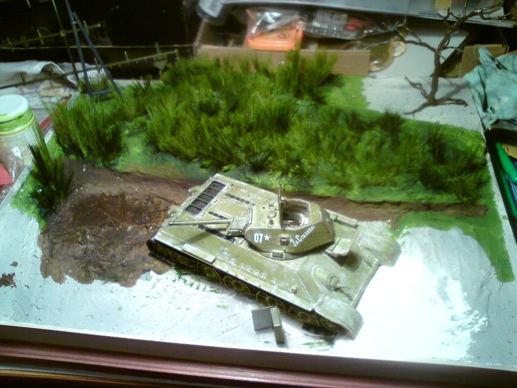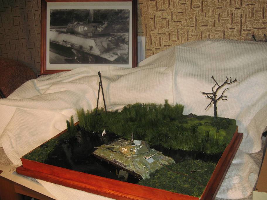 Выношу на Ваш суд диораму, которую делал по фото времён ВОВ. Старался максимально сделать копийно сам танк. Обстановка вокруг танка - исключительно моя фантазия и возможности подручных средств.