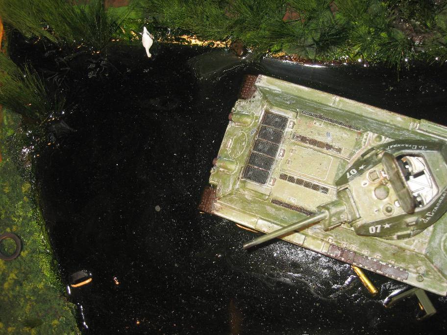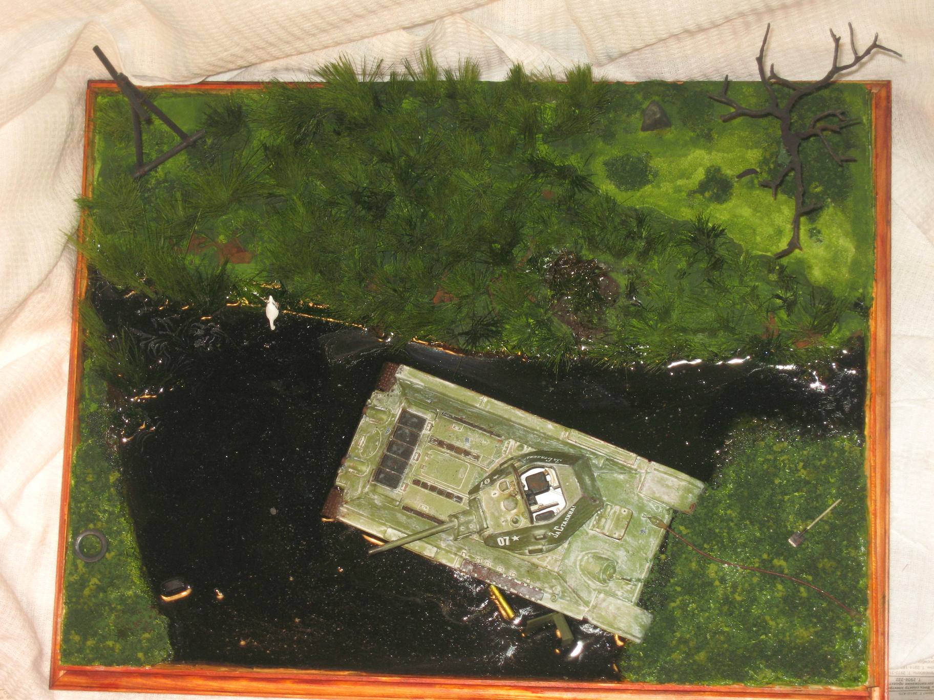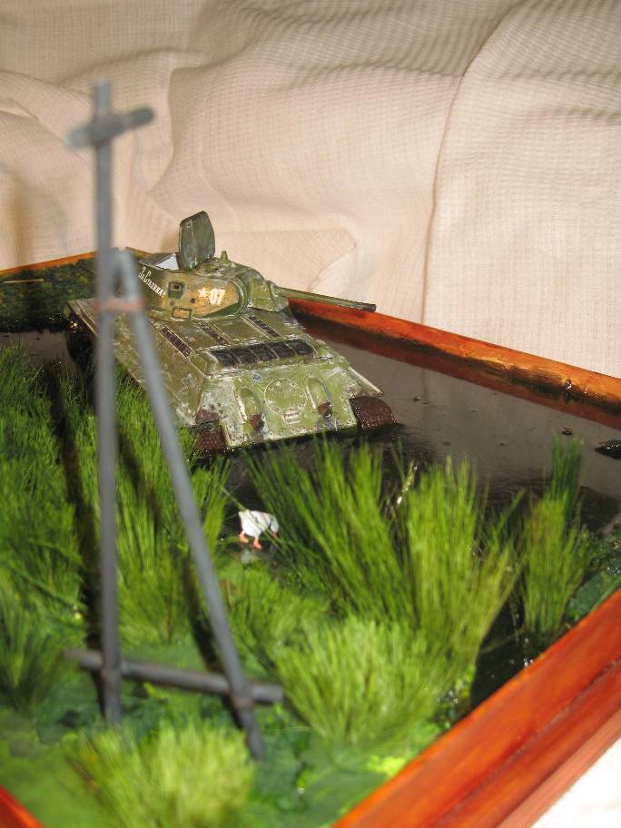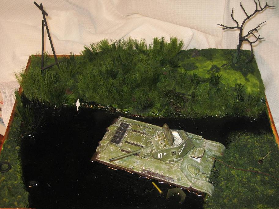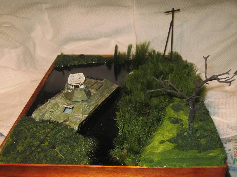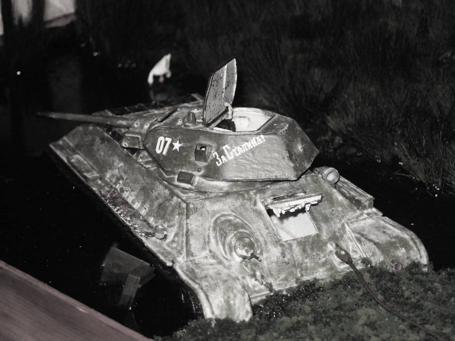 Видно много времени ушло на работу . Я не берусь за такие объемы. По моему не хватает живых людей , как-то скучно . Вода мне кажется темной и открытый люк механика - водителя показывает пустоту внутри танка . С ув.