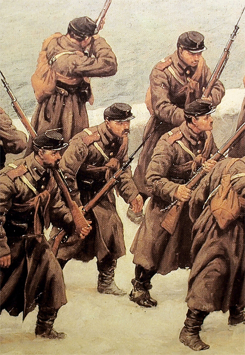 - Потрёпанность шинели внизу немного смягчить (и полностью убрать её на вертикальном разрезе спереди). Полы шинели, в полевых условиях изнашиваются немного по-другому. Большими клоками по всему периметру она будет висеть, если её только собаки регулярно дерут.