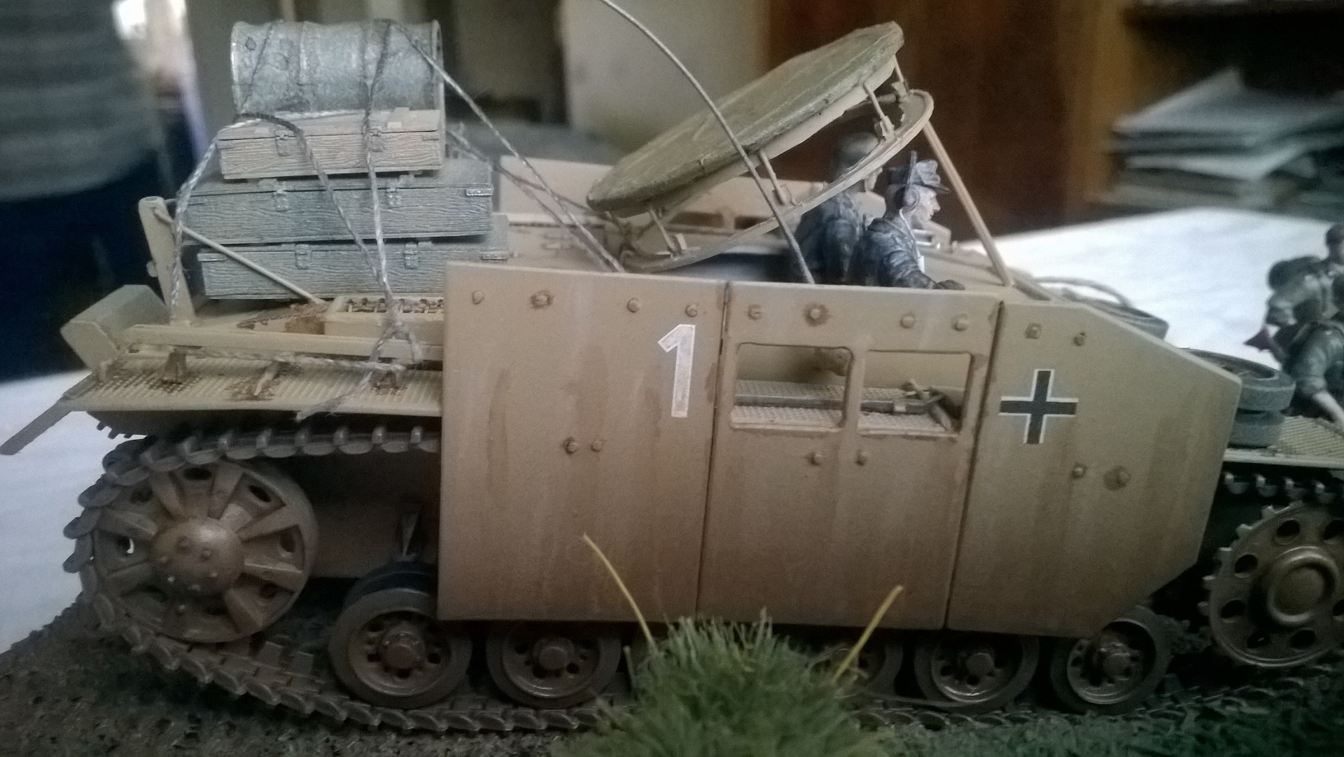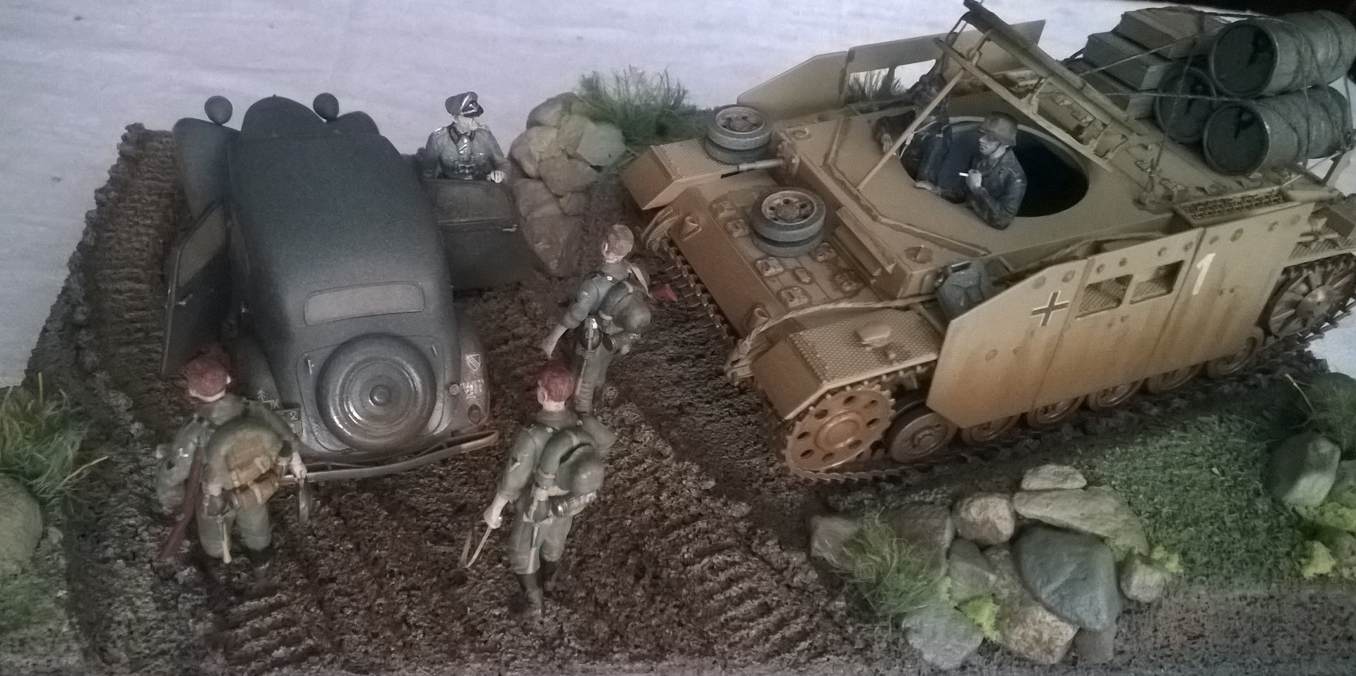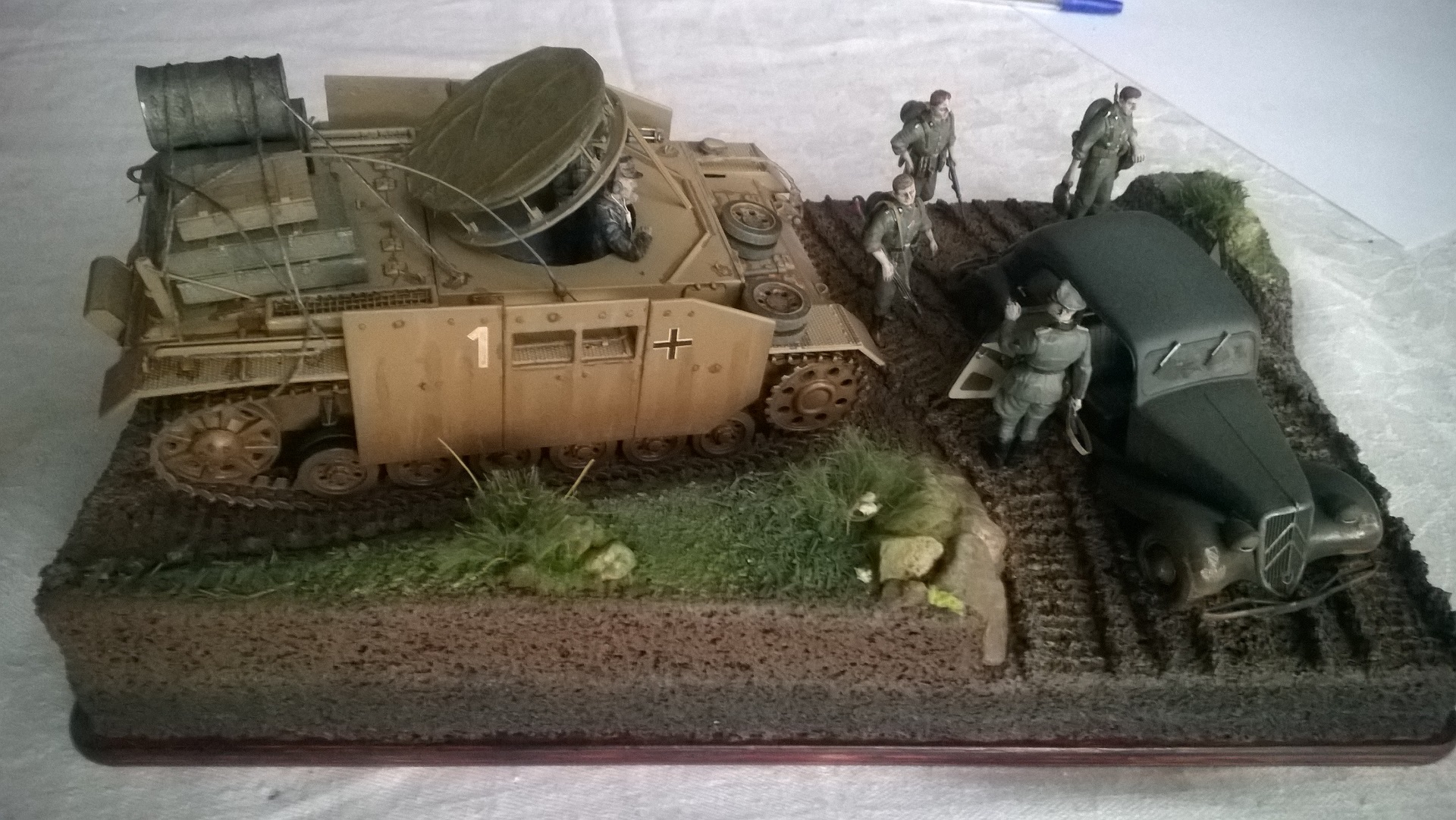 Использован вспомогательный подвозчик боеприпасов на базе среднего немецкого танка T-IVG <звезда>. автомобиль Citroen <tamiya>.краски AKAH