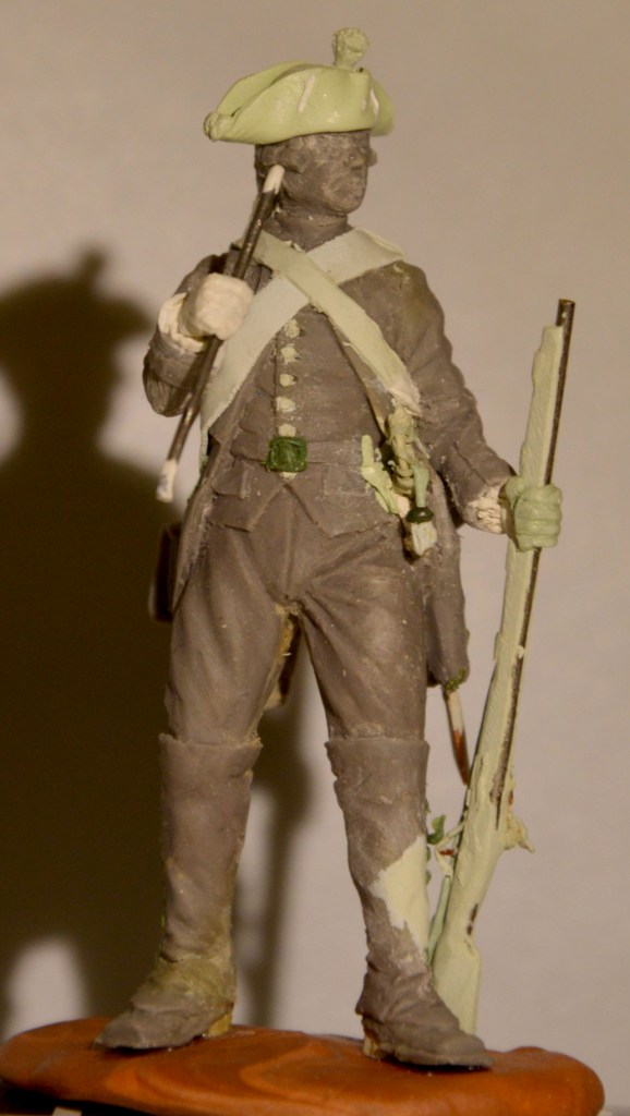 Фигурка 54мм по глаза.Хотел вылепит определённый полк,но после всего навешенной амуниции стало не понятно какой полк.поэтому просто солдат