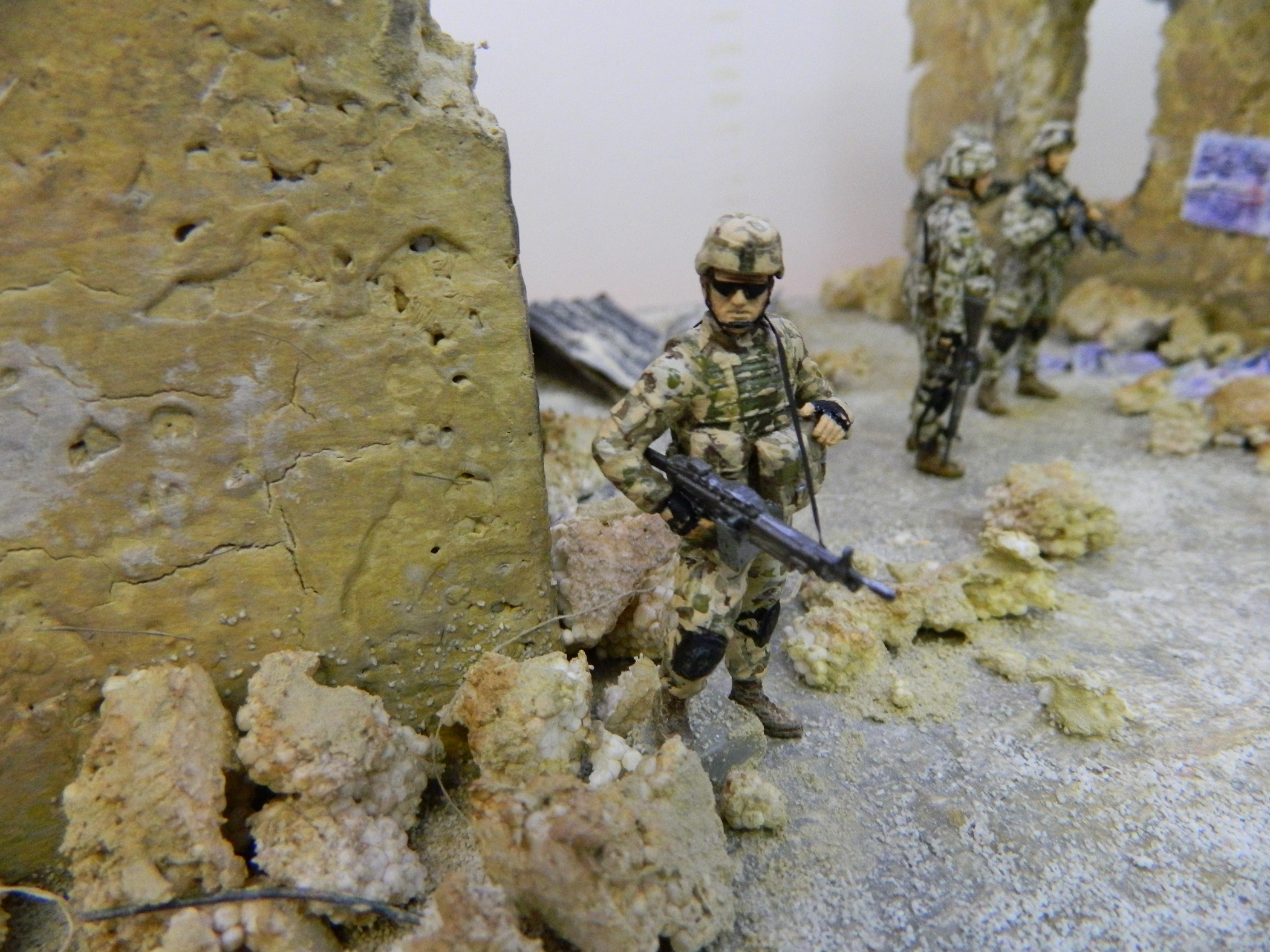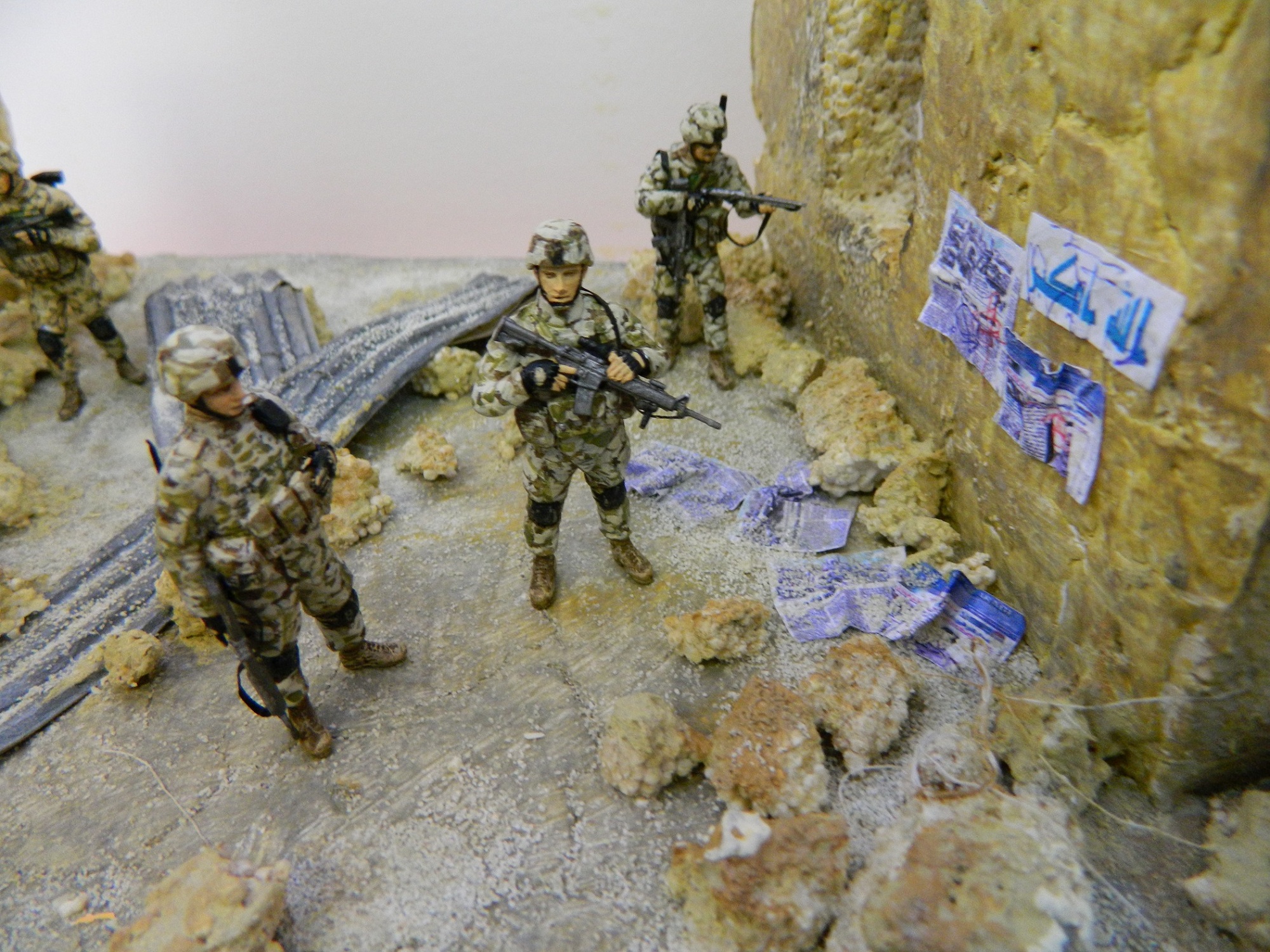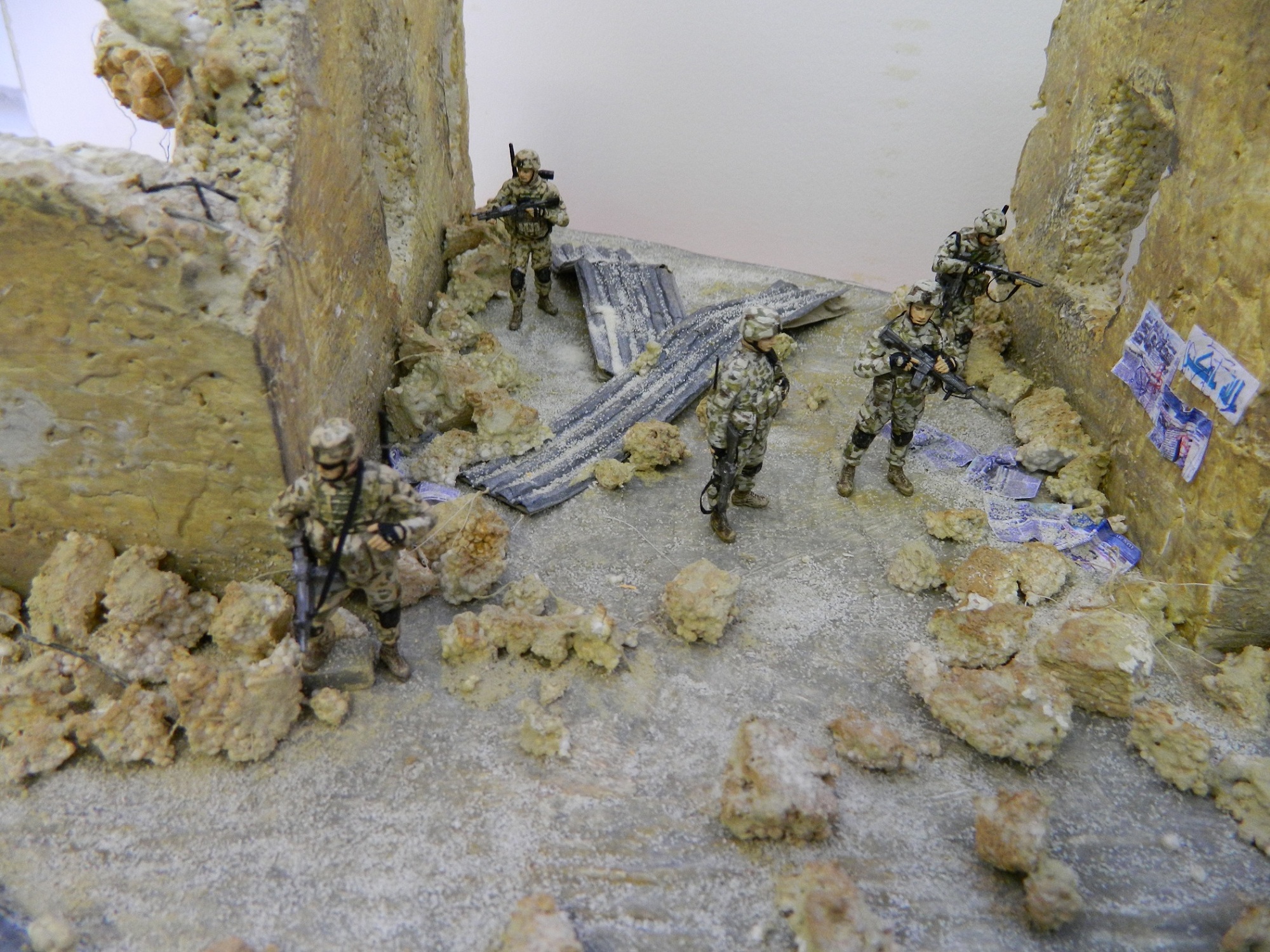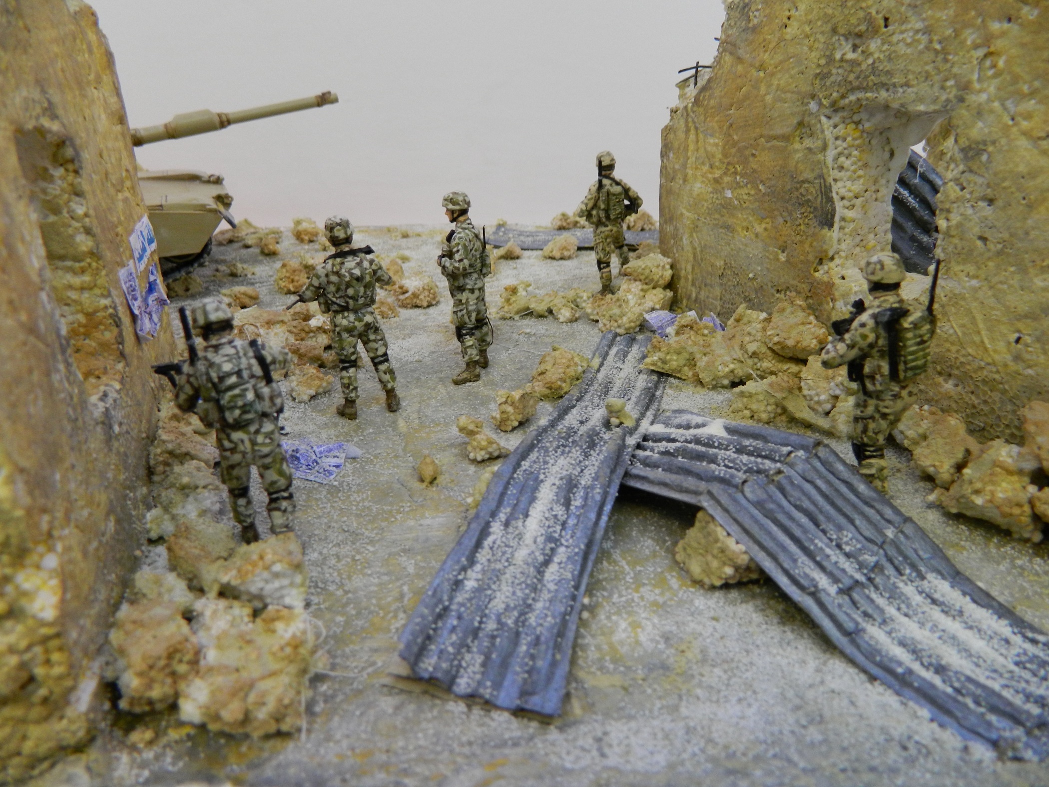 Вдохновился диорамой "Патрулирование окрестностей Багдада"и пока в разработке не завершена моя композиция "Иракская кампания". Фигурки от Мастербокс, танк "Абрамс" от Тамии. Остальные детали подручный материал, пенопласт , покрытый водоэмульсионкой и в некоторых местах пастой Тамия под песок, "шифер" из листов обыкновенной упаковки, разделенной пополам (в центре рельефная вставка есть.)Ну и ко всему прочему, регистрировался по новому Низиб - это Бизин моя работа "Оборона Сталинграда", кто-то уже наверное видел.