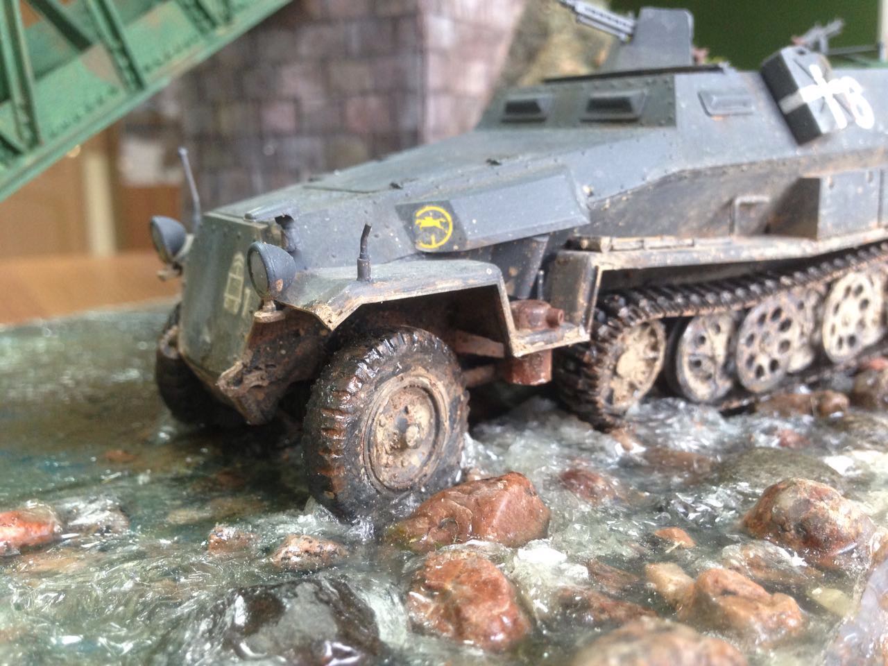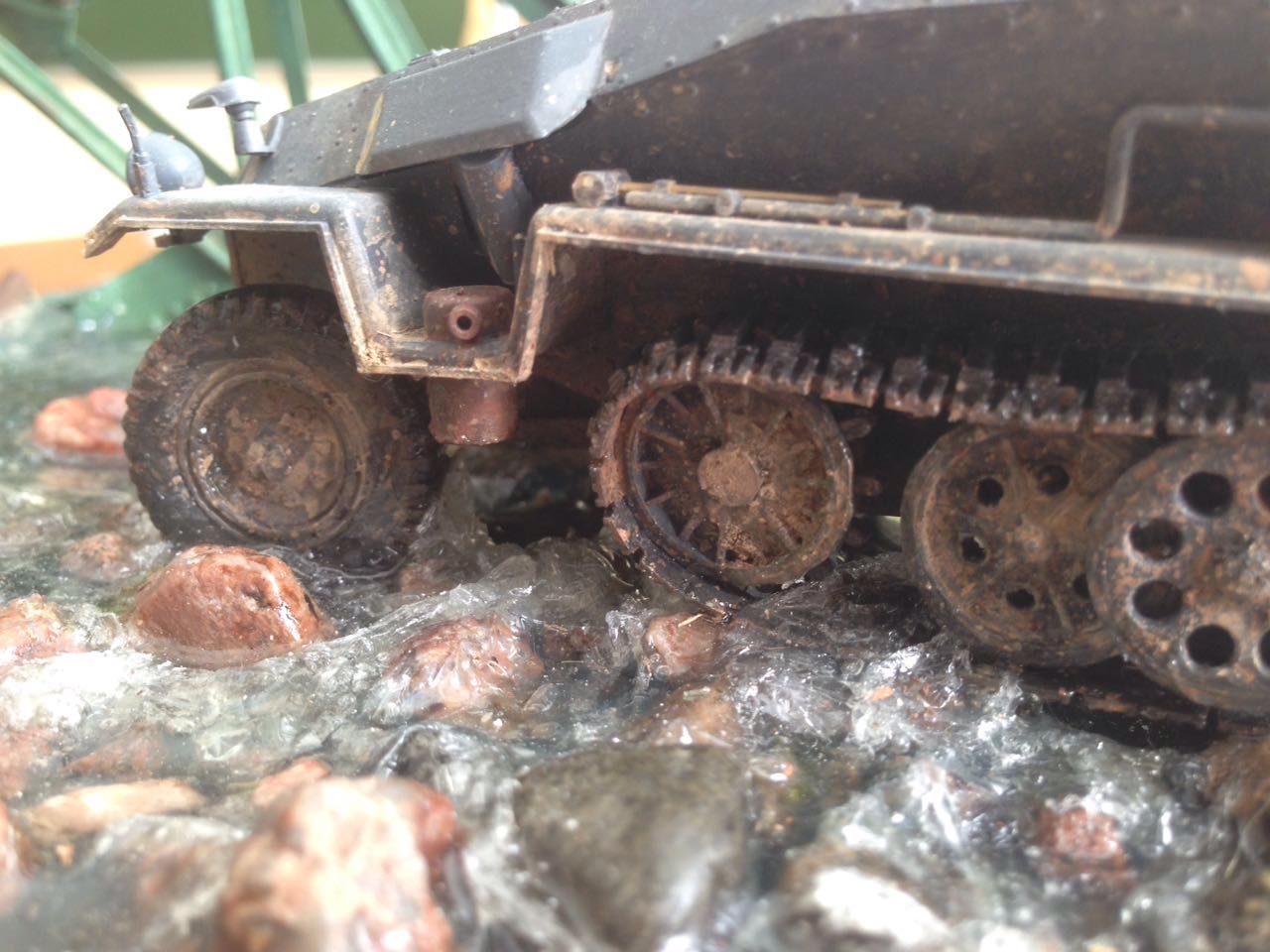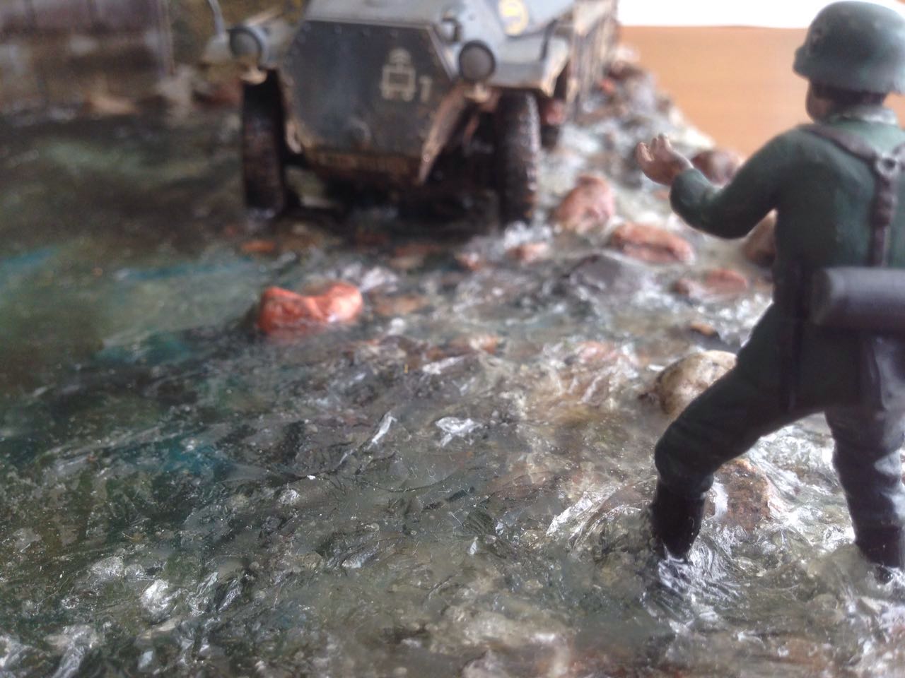 Очень хотелось попробовать воду, где-то увидел на переправе Pz 4, и так как уже был готов ханомаг, решил его разместить на диораме.