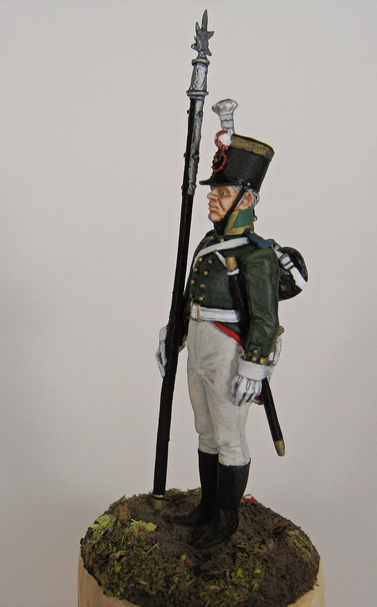 Вот такие две фигурки на 1805-7 год. Пехотинец унтер-офицер Архангелогородского мшкетерского полка, штаб-трубач Черниговского драгунского. Обе фигурки от E.K. Casting, 54 мм. Обе фигурки подверглись небольшим доработкам, чтобы соответствовать заявленному внешнему виду)