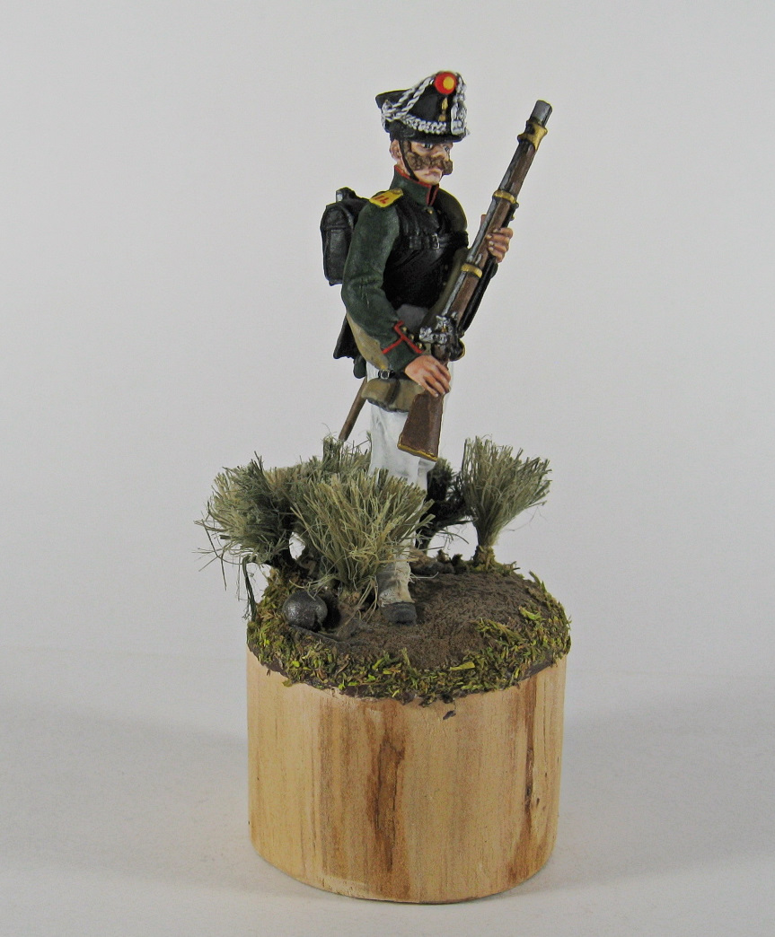 Изображает рядового третьего батальона, егерьской роты (7-9), 1-го егерьского полка. На кампанию 1812 года.