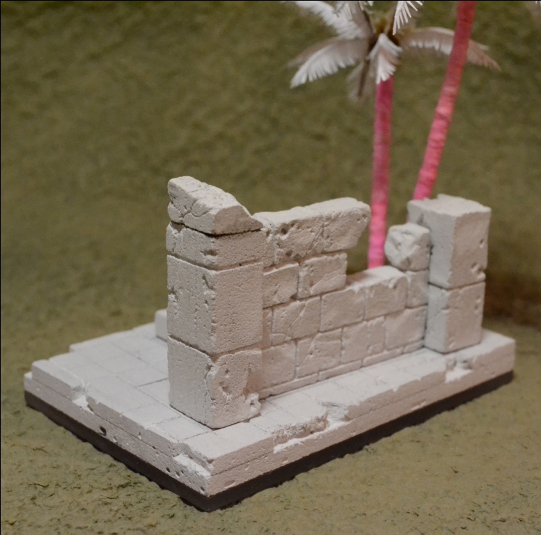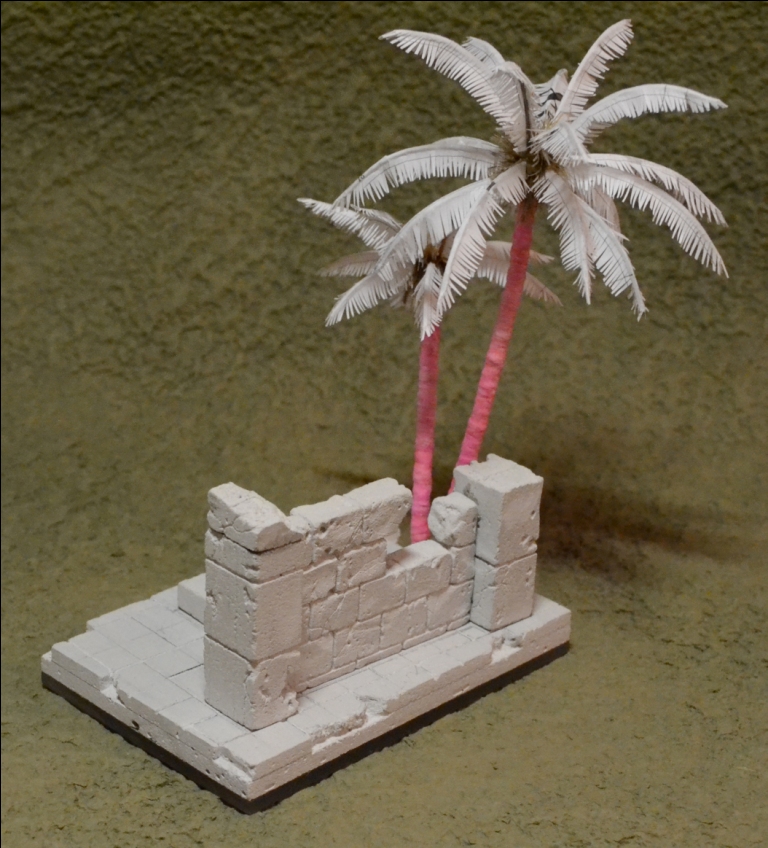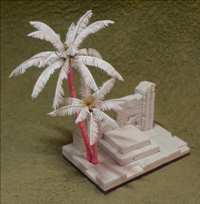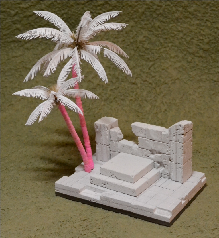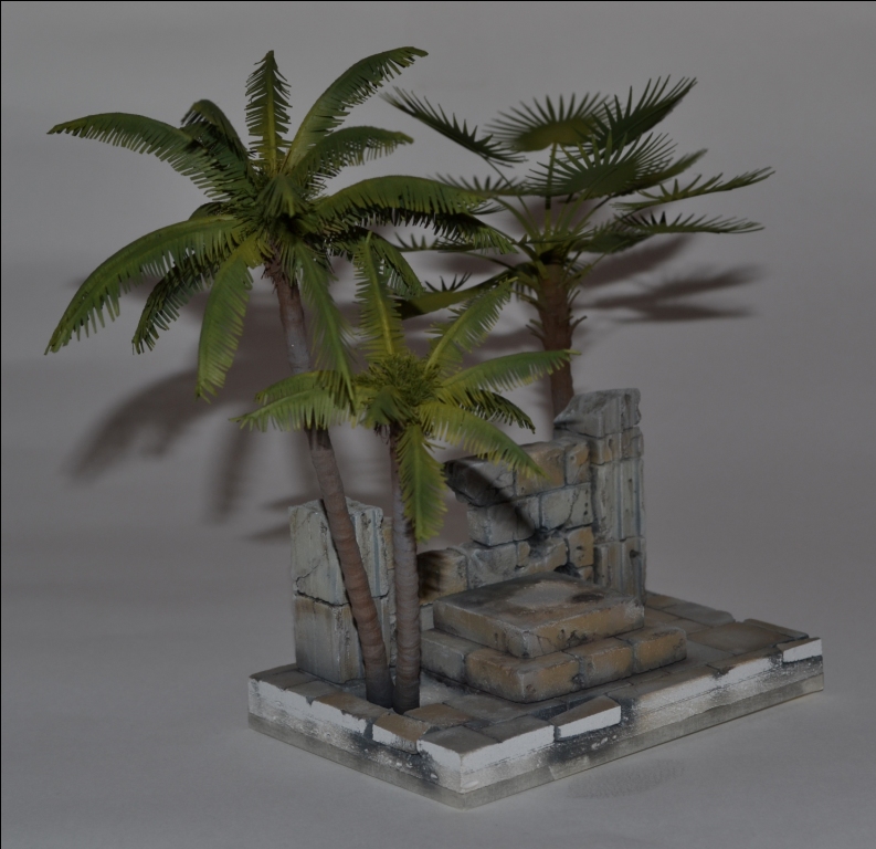 Фото о дальнейшей проделанной работе. Все каменное окрашивалось аэрографом, расписывалось темперными красками и финишно доводилось пигментами разных производителей. Пальмы ожили после такой же проведенной над ними работы. Осталась только тонировка. Работаю дальше...