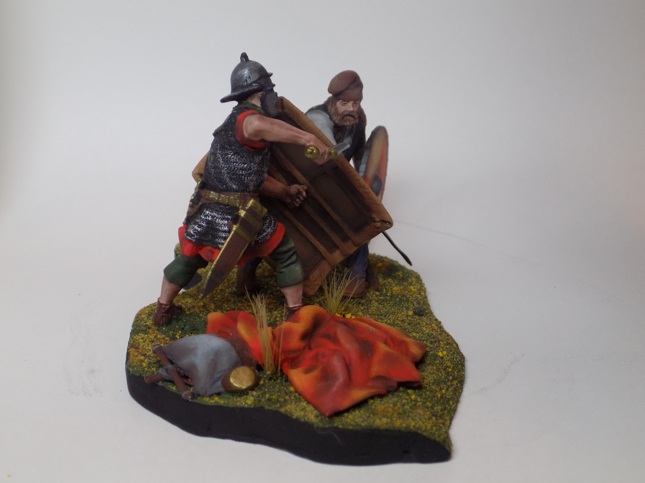 Забыла указать в описании: проиводитель-Пегасо, но щит германца-не родной. Масштаб 1:32(54 мм)