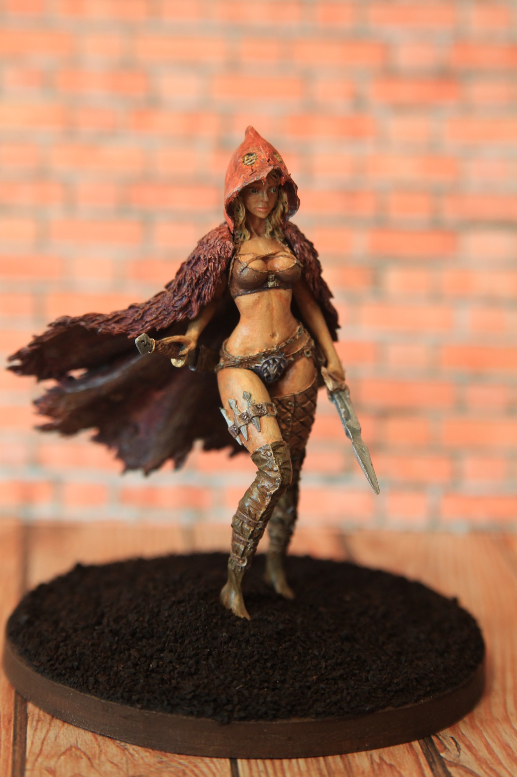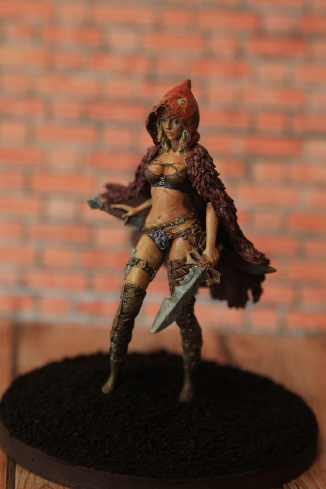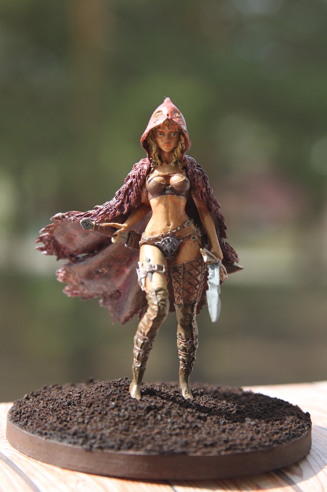 Кит от "Натс планет",конечно хорош.Самому нравится эта Красная шапочка.У Вас,как я понял,рекаст с "Али" не очень выдающегося качества,поэтому к обработке миниатюры нужно было подойти более бережно-видны всякие крошки и неровности.По покраске советую посмотреть работы мастеров на"Планете фигур" или бокс-арт,можно еще доработать.