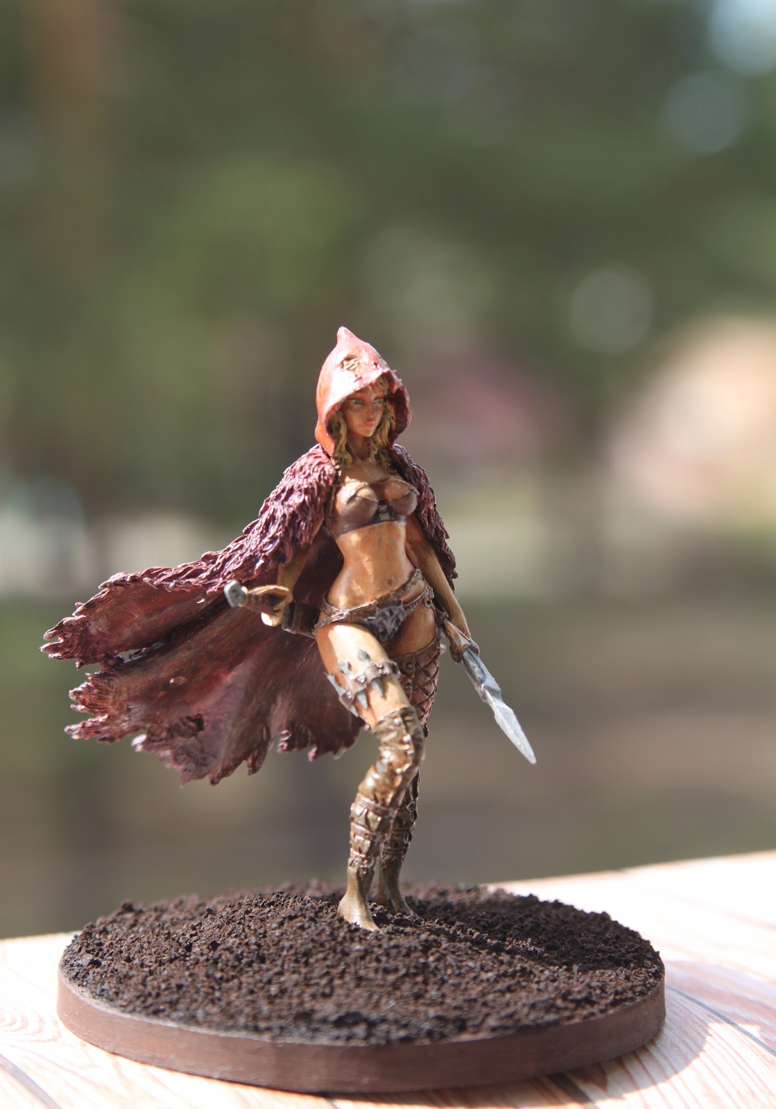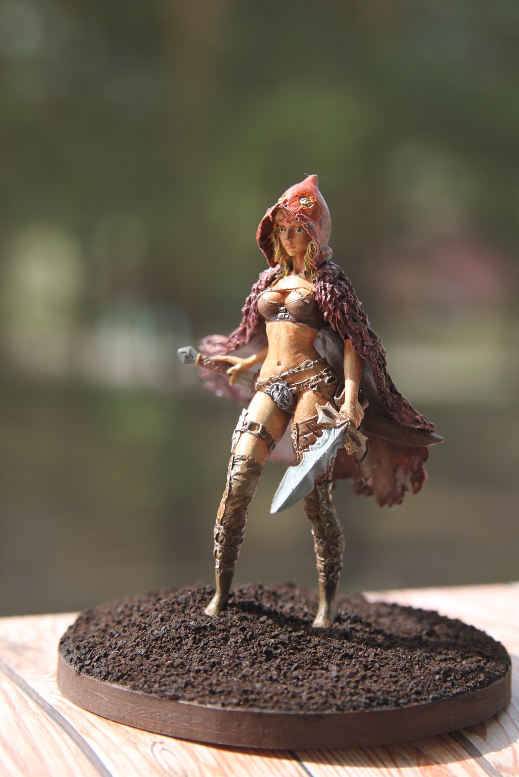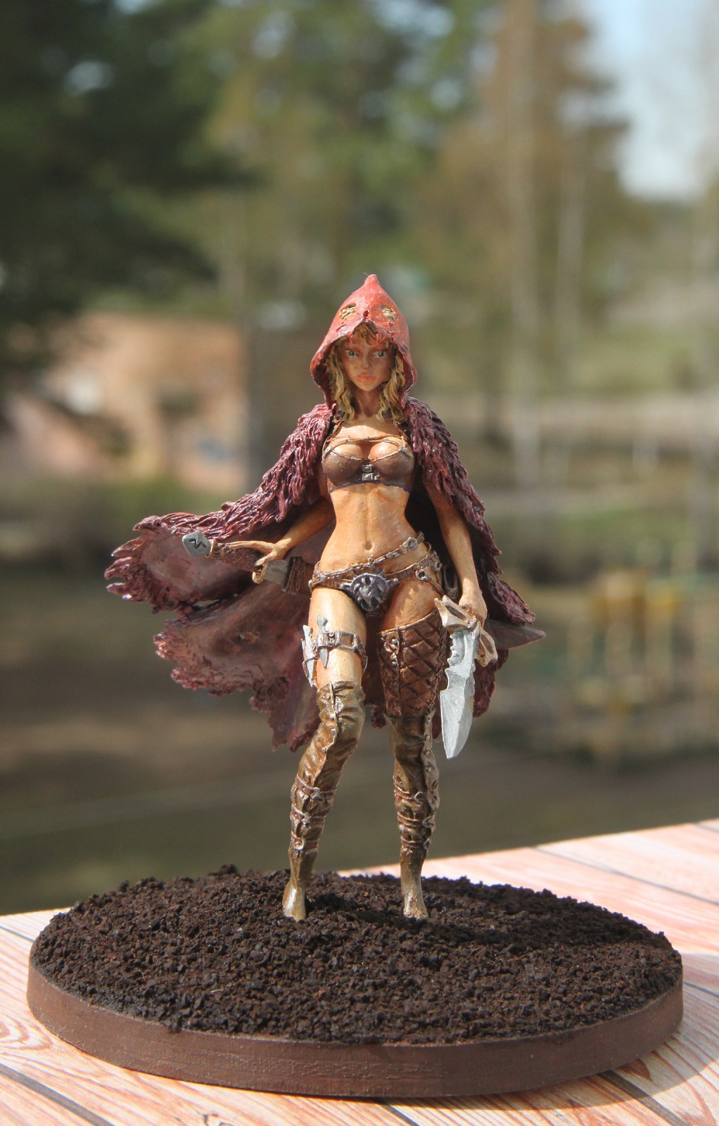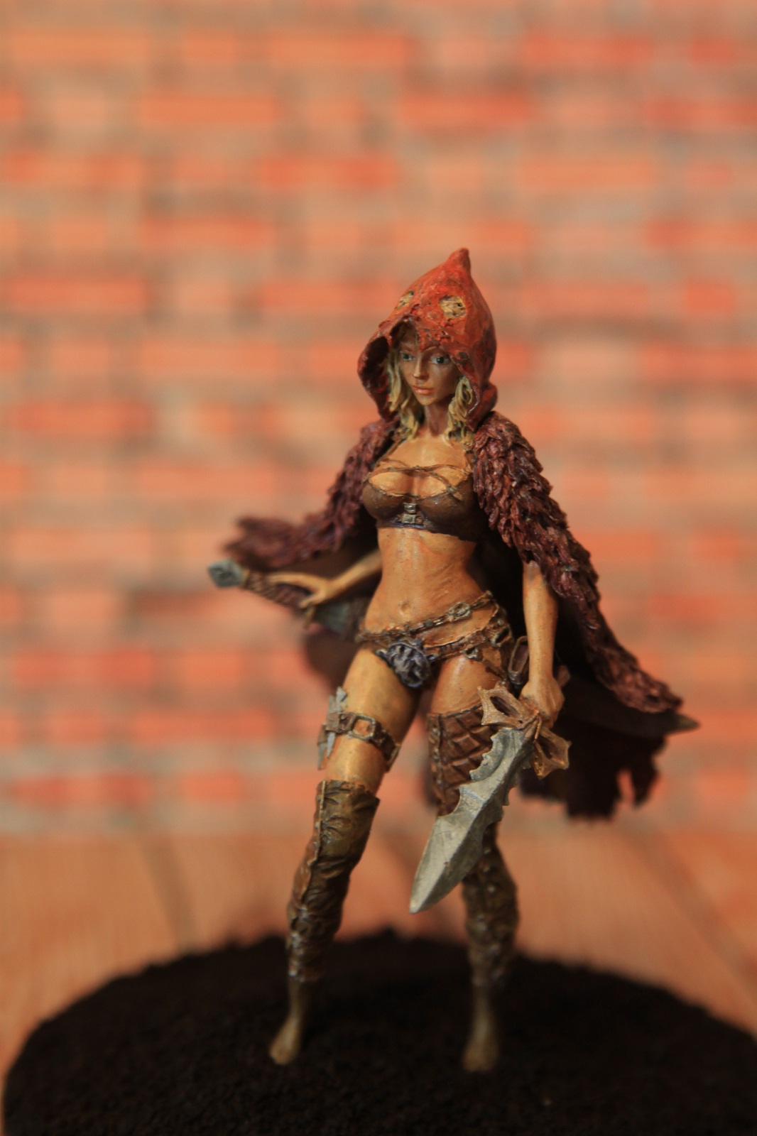 Кит от "Натс планет",конечно хорош.Самому нравится эта Красная шапочка.У Вас,как я понял,рекаст с "Али" не очень выдающегося качества,поэтому к обработке миниатюры нужно было подойти более бережно-видны всякие крошки и неровности.По покраске советую посмотреть работы мастеров на"Планете фигур" или бокс-арт,можно еще доработать.