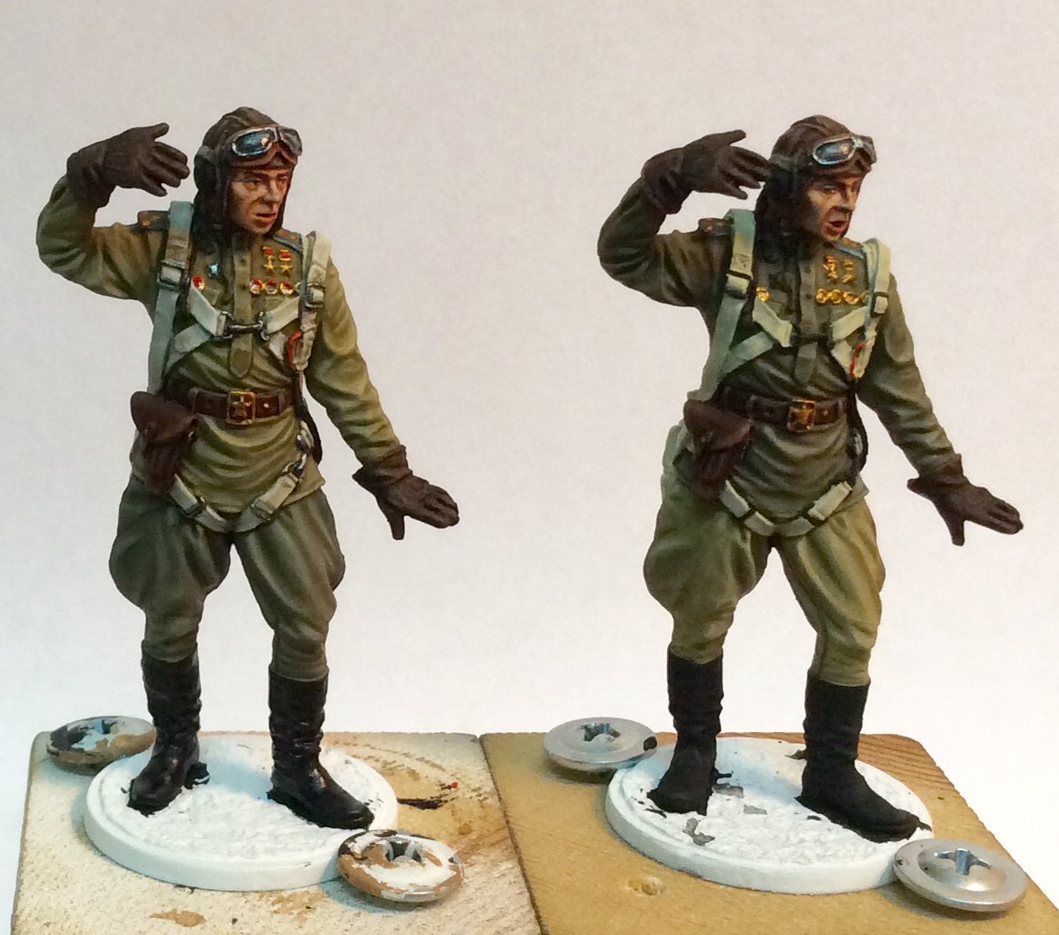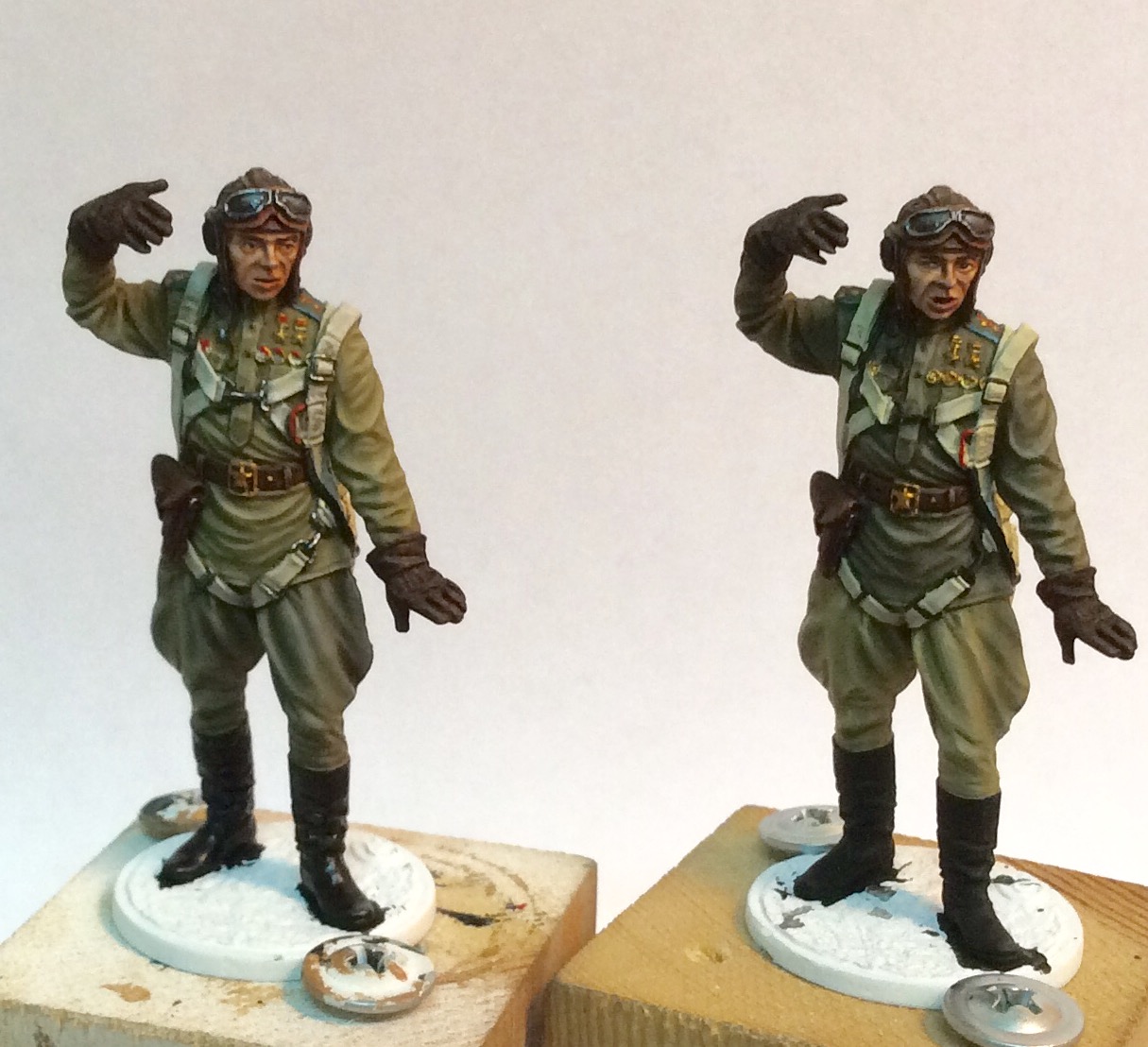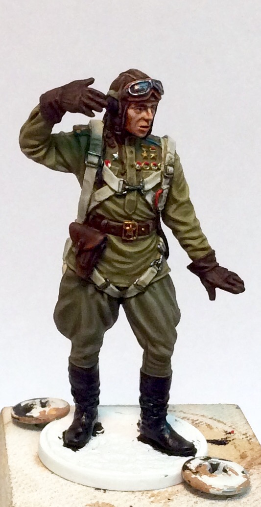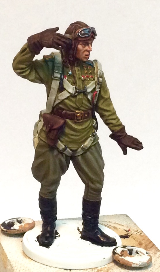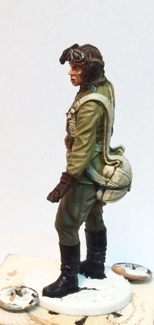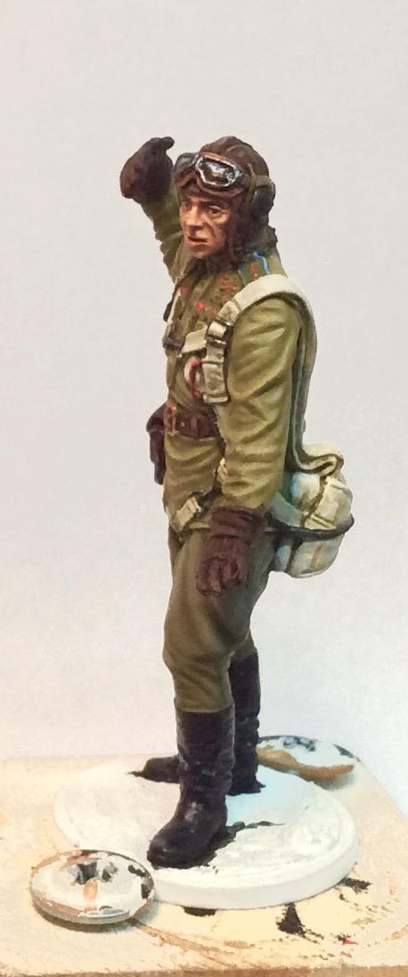 Почему не знаю, но именно с этой строкой из песни у меня ассоциируется эта фигура От ЕК Кастингс, скульптор Юрий Пятков. Олово 54 мм. Акрил, темпера ПВА. Работаю сразу с двумя летчиками. Фигуры в процессе