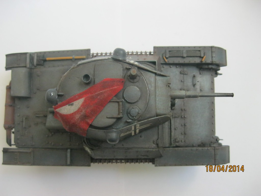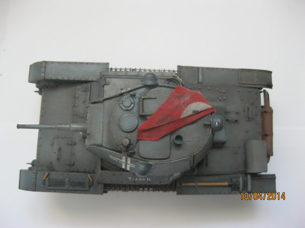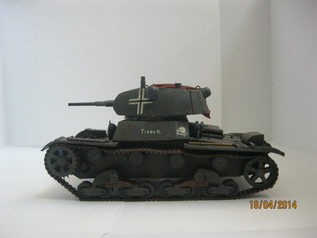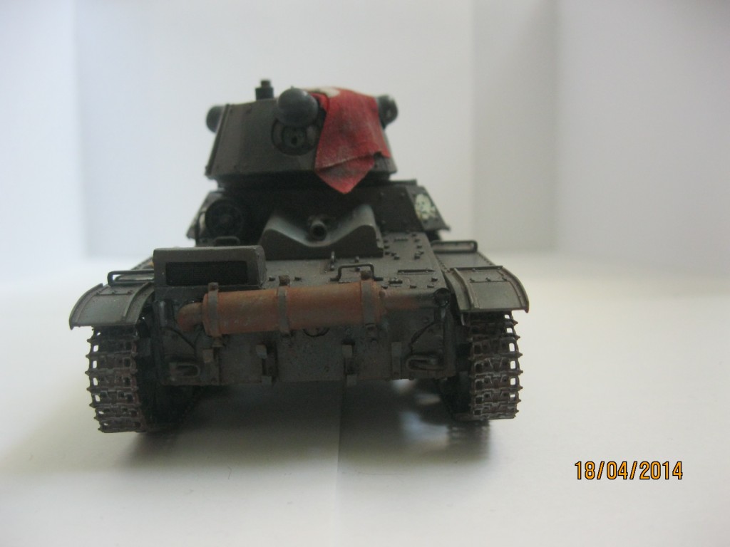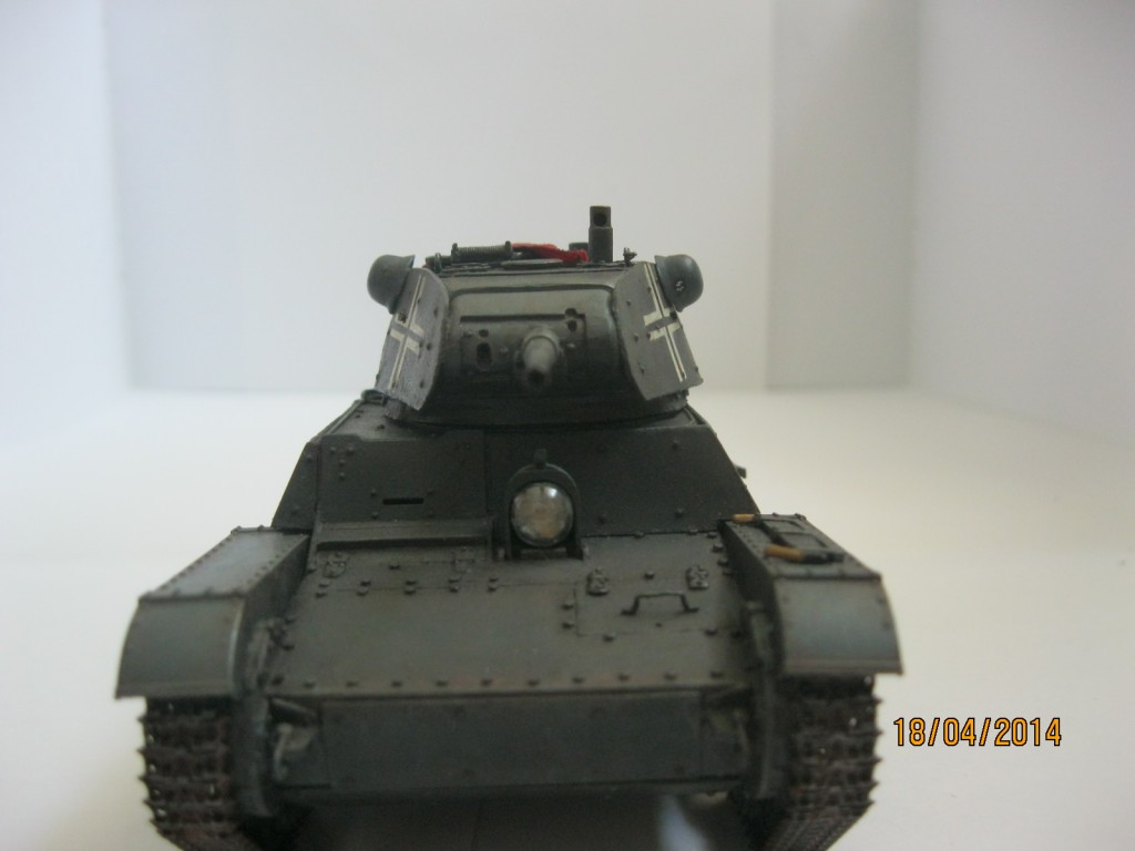 Смоляные детали, входящие в набор мне пришлось дорабатывать, верхнюю часть корпуса "Звезды" мне необходимо было заменить на смоляную ,т.к. я делал танк модификации 1939 года. В итоге пришлось от "Звездовской" детали резать передний лист брони(в смоле эту деталь решили не делать), а потом подгонять корпус и лист брони друг к другу. Очень сожалею, что не сделал фотографии процесса сборки. Дополнительные броневые экраны делал из картона, стекло фары и сама фара самодельные, ствол от Model Point ,болты от Master Club(диаметр 0.9 мм), запасной каток и каски-копия из полиэфирной смолы, кресты на башне сделаны по трафарету, штандарт из парусины, глушитель-выточил на станке, хомуты крепления на нем-фольга. Заклепки на экранах-из тянутого литника.