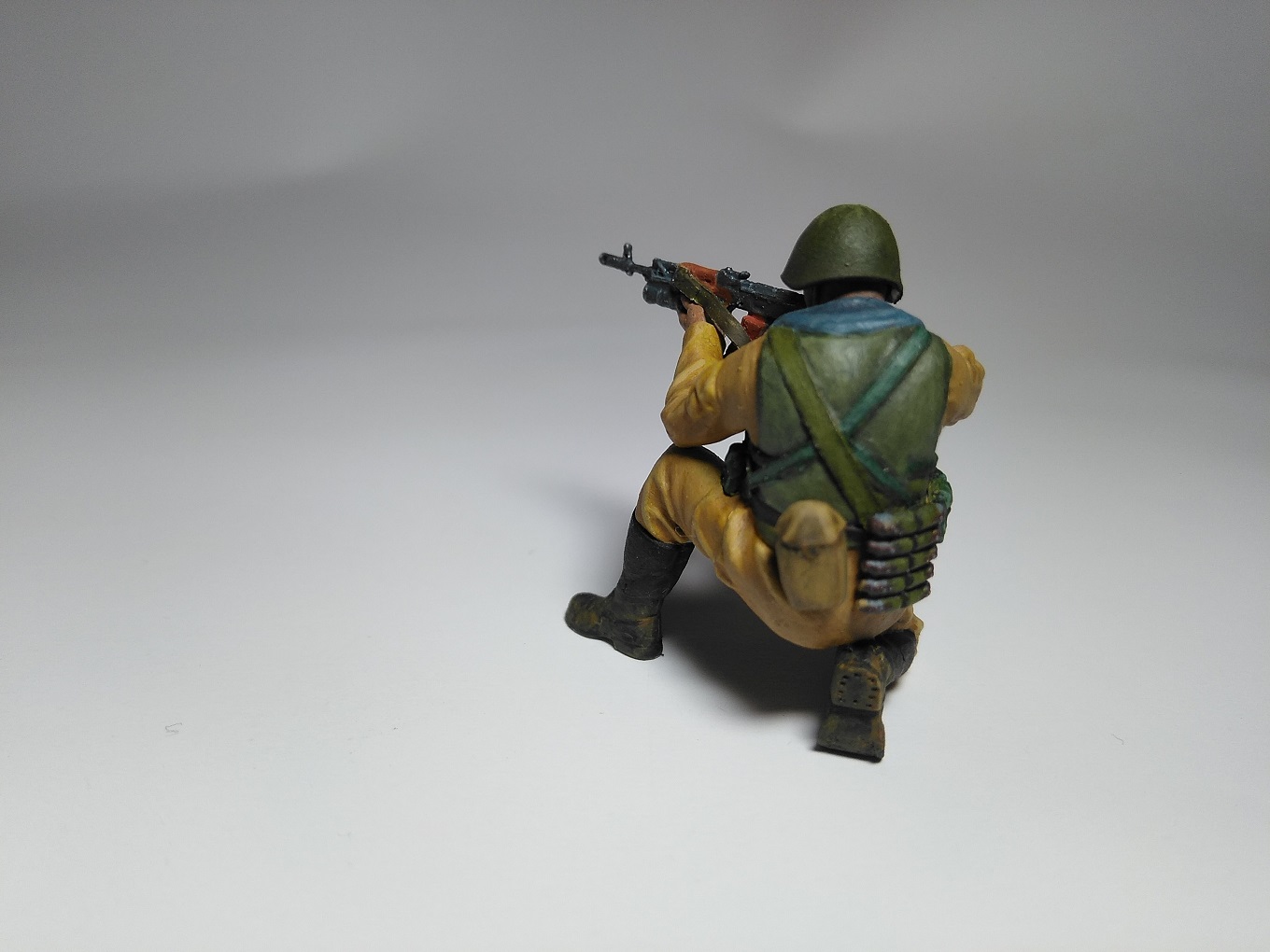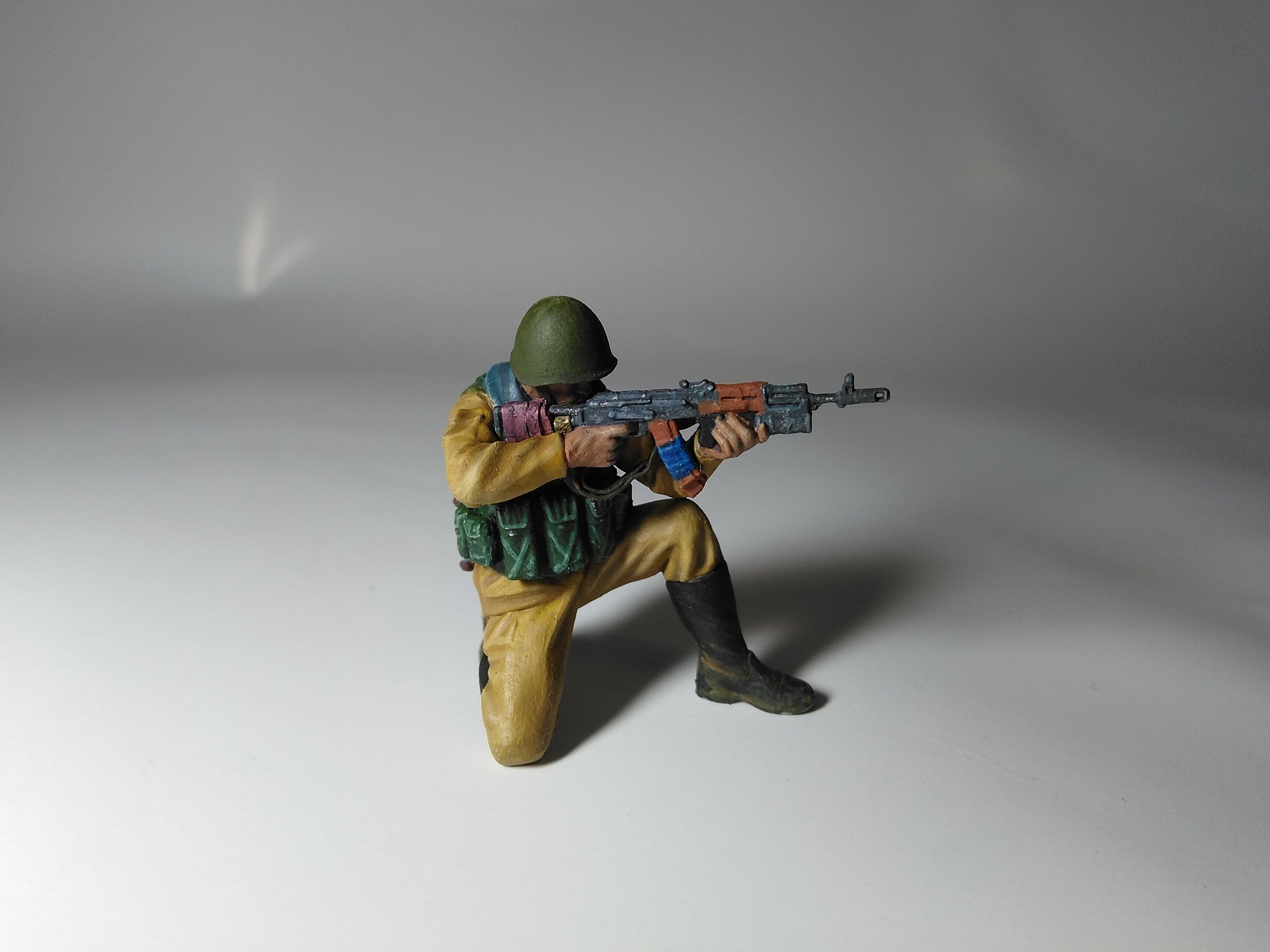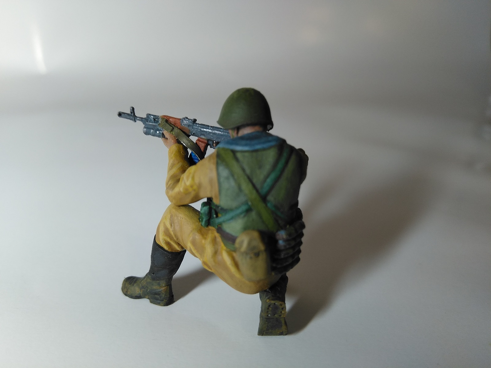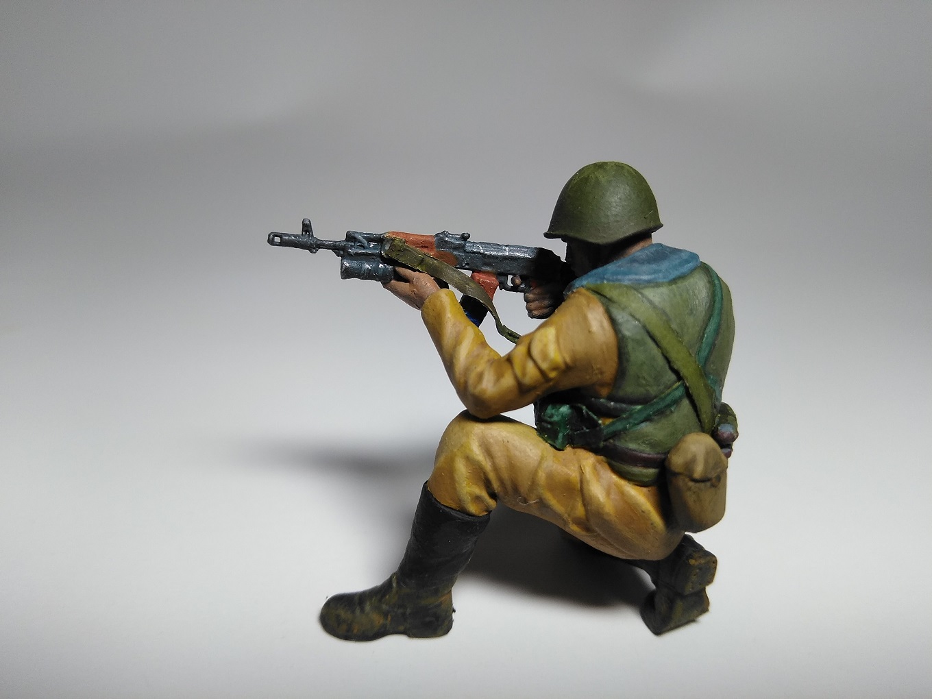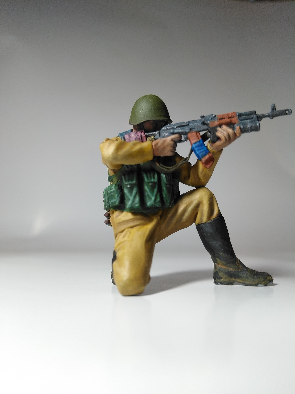 Фигурка из набора "Звезды". Краска акрил "Ладога". Из доработок: ремень для автомата, ремень подсумка для гранат ВОГ-25, ремни на разгрузку, жгут на прикладе.